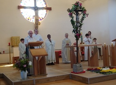 Bei der Seelenmesse für Elisabeth Sch., die viele Jahre (Jahrzehnte?) liebevoll den Pfarrgarten gepflegt hat schmücken über 50 Sonnenblumen den Altar, die nach der Messe in Erinnerung an Elisabeth verschenkt werden. (Alle Fotos siehe Bildergalerie 2025)