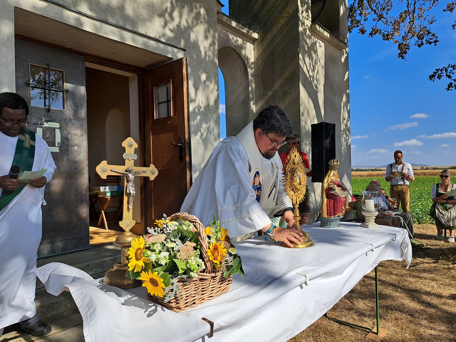 Die traditionelle Andacht feierten am 8. September 2024 mit den Wallfahrern Pfarrer Wolfgang Brandner, Pfarrvikar Alexandre Mbaya-Muteleshi und der Augustiner-Chorherr Thaddäus Ploner Can.Reg. aus dem Stift Klosterneuburg, der auch die Festpredigt hielt.