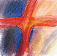 Das Altarbild versinnbildlicht das Universum, die Erde und die Auferstehung Christi. Von der Erde (grüne Halbkugel), im Universum eingebettet (Hyperbelbogen), löst sich die Seele vom Irdischen. Die Erdbindung hinter sich lassend (Diagonale nach rechts oben), schwebt die Seele mit Gloria in die Ewigkeit.