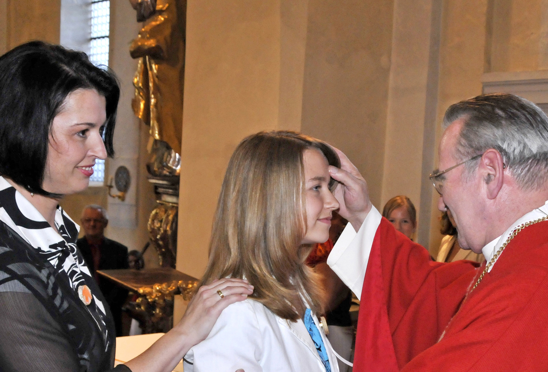 Gefirmt zu werden, bedeutet mit dem Heiligen Geist gestärkt(von lat. confirmatio) zu werden. Das geschieht durch die Salbung mit Chrisamöl und Handauflegung. Die Firmung ist - nach Taufe und Eucharistie - das dritte Sakrament der Aufnahme in die Kirche.