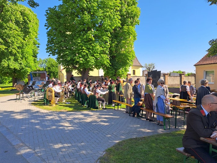 Unter zahlreicher Beteiligung der Bevölkerung, vielen Feuerwehrleuten und der Musikkapelle Orth/Donau zelebrierte Pfarrer Erich Neidhart ...