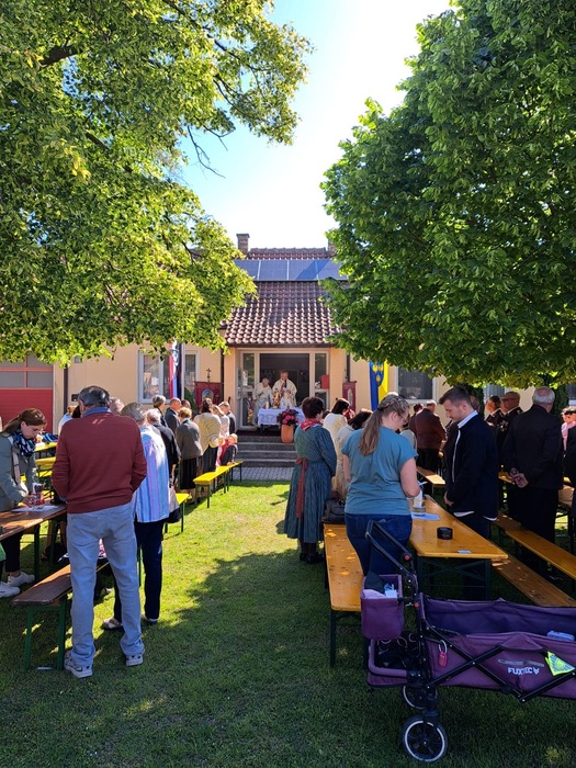 mit Diakon Alfons Rusznak die Hl. Messe auf dem Platz vor dem FF-Haus.
