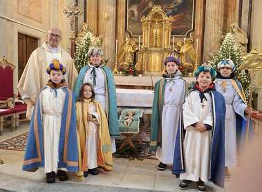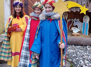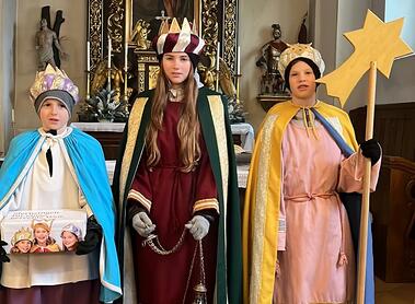 Auch in der Pfarre Sitzendorf waren Kinder als Kaspar, Melchior und Balthasar verkleidet unterwegs und brachten den Sternsingersegen an den Türen der Häuser und Wohnungen an. Am Foto sind die Sternsinger zu sehen, die in Pranhartsberg und Sitzenhart unterwegs waren.