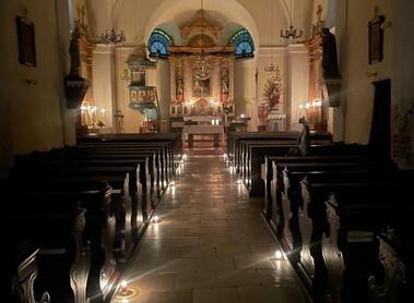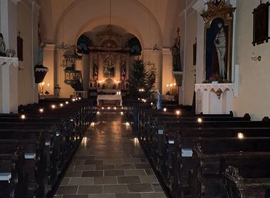 Die zweite Roratemesse war ein intensives abendliches Erlebnis in einer ruhigen, nur von Kerzen erleuchteten Kirche. Die noch unbeleuchtete Tanne und der Weihrauch vermittelte Anklänge an die kommenden Weihnachtszeit mit ihren Raunächten.
