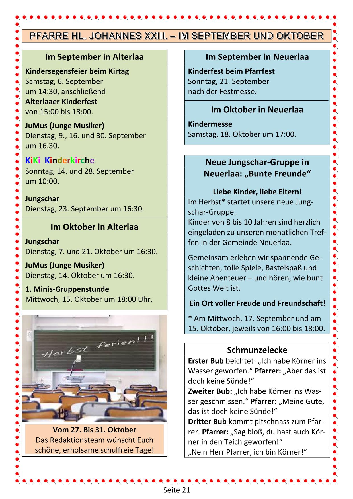 Termine für die Pfarre Hl. Johannes XXIII. (Gottesdienste finden Sie unter GOTTESDIENSTE)