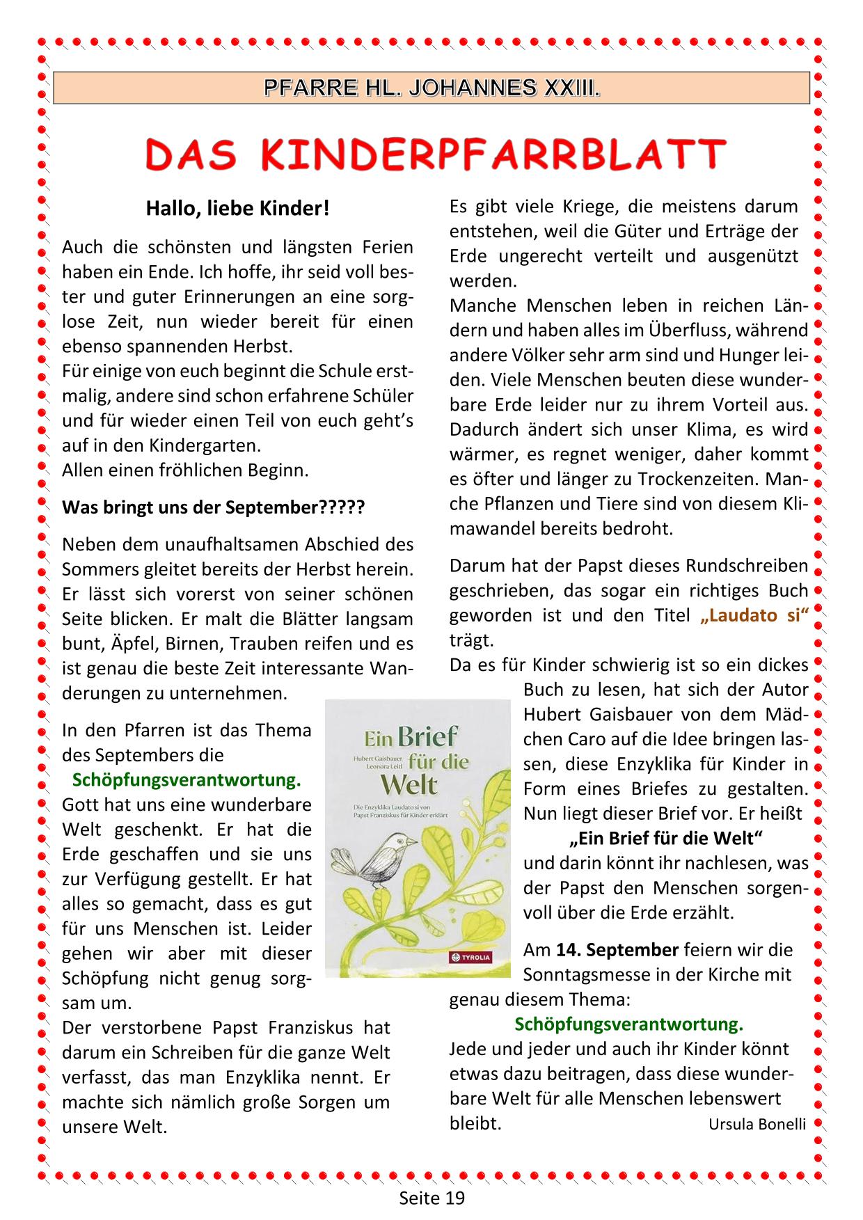 Zu den aktuellen Gemeindeblättern und Verlautbarungen