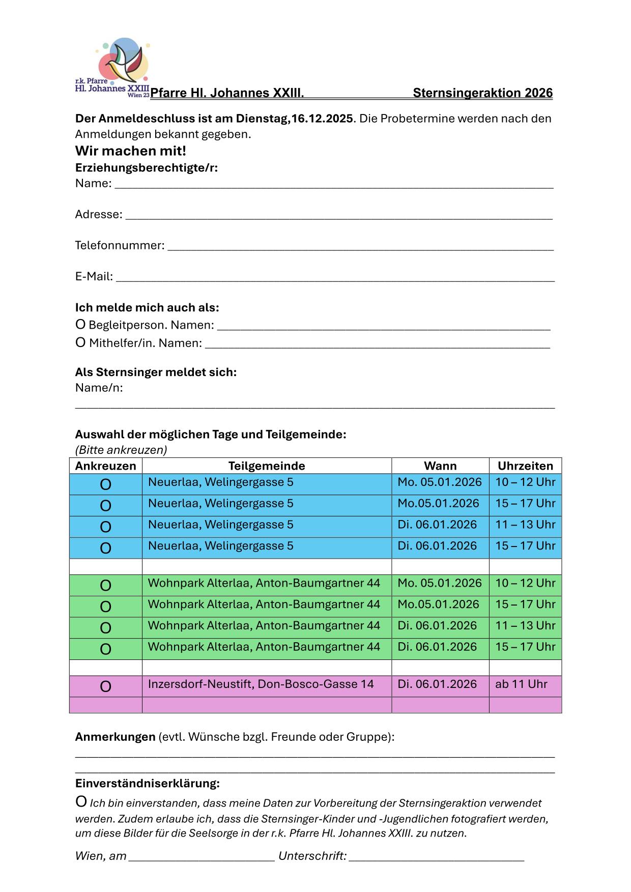 Termine für die Pfarre Hl. Johannes XXIII. (Gottesdienste finden Sie unter GOTTESDIENSTE)