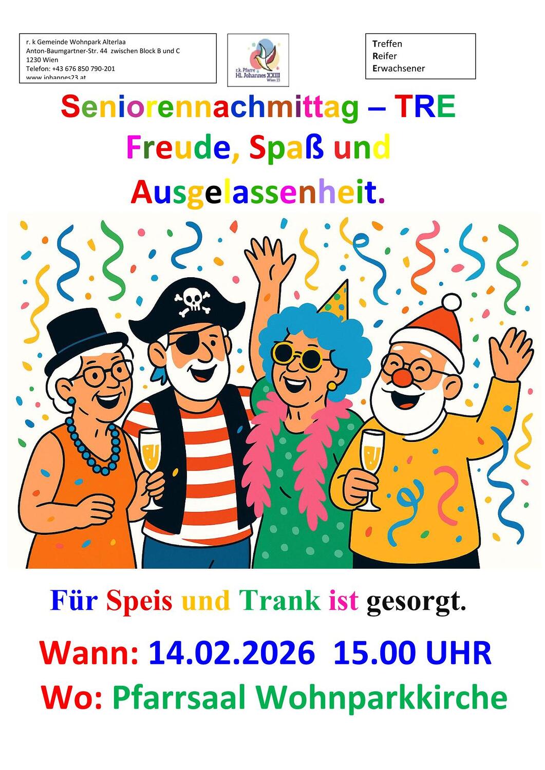 SENIORENNACHMITTAG - TRE - FASCHING - am 14.02.2026 ab 15 Uhr