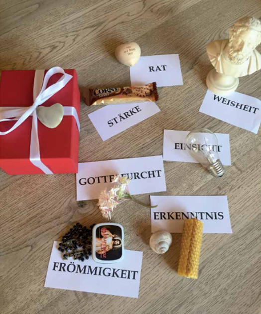 ein Stationenbetrieb, bei dem die Jugendlichen in Gruppen die verschiedenen Aspekte der 7 Gaben des Heiligen Geistes erkundeten.