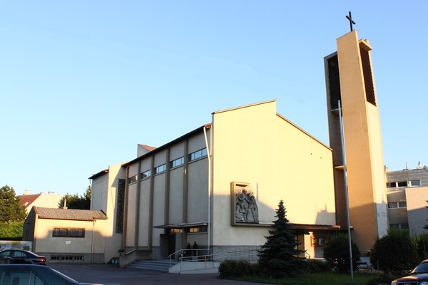 - Nach dem Ankauf eines Grundstückes erfolgte am 18. Juli 1960 der erste Spatenstich für eine neue Kirche in der Welingergasse.