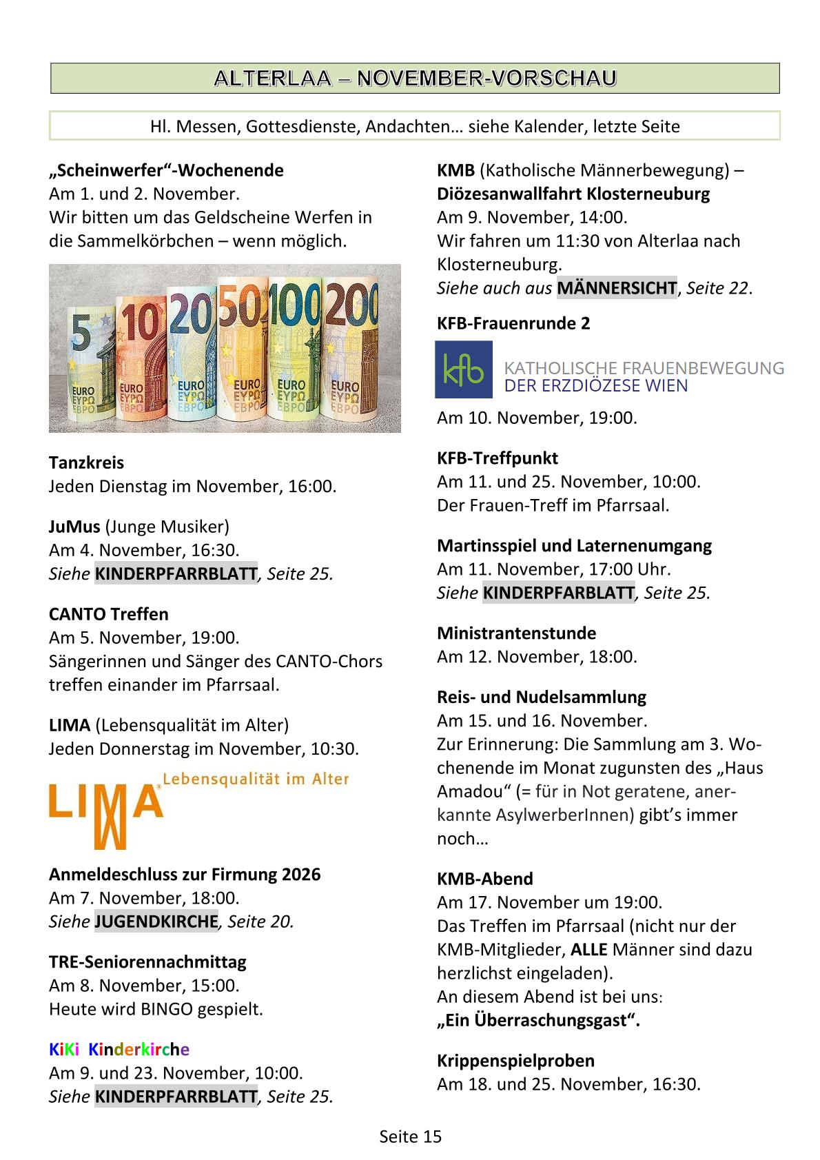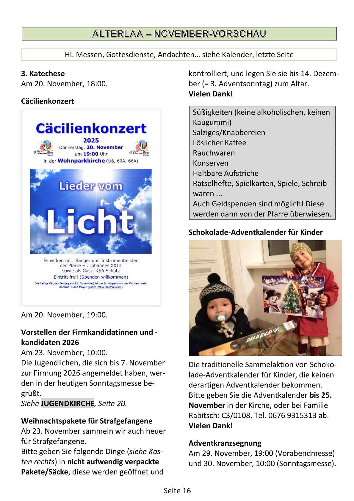 Termine für die Pfarre Hl. Johannes XXIII. (Gottesdienste finden Sie unter GOTTESDIENSTE)