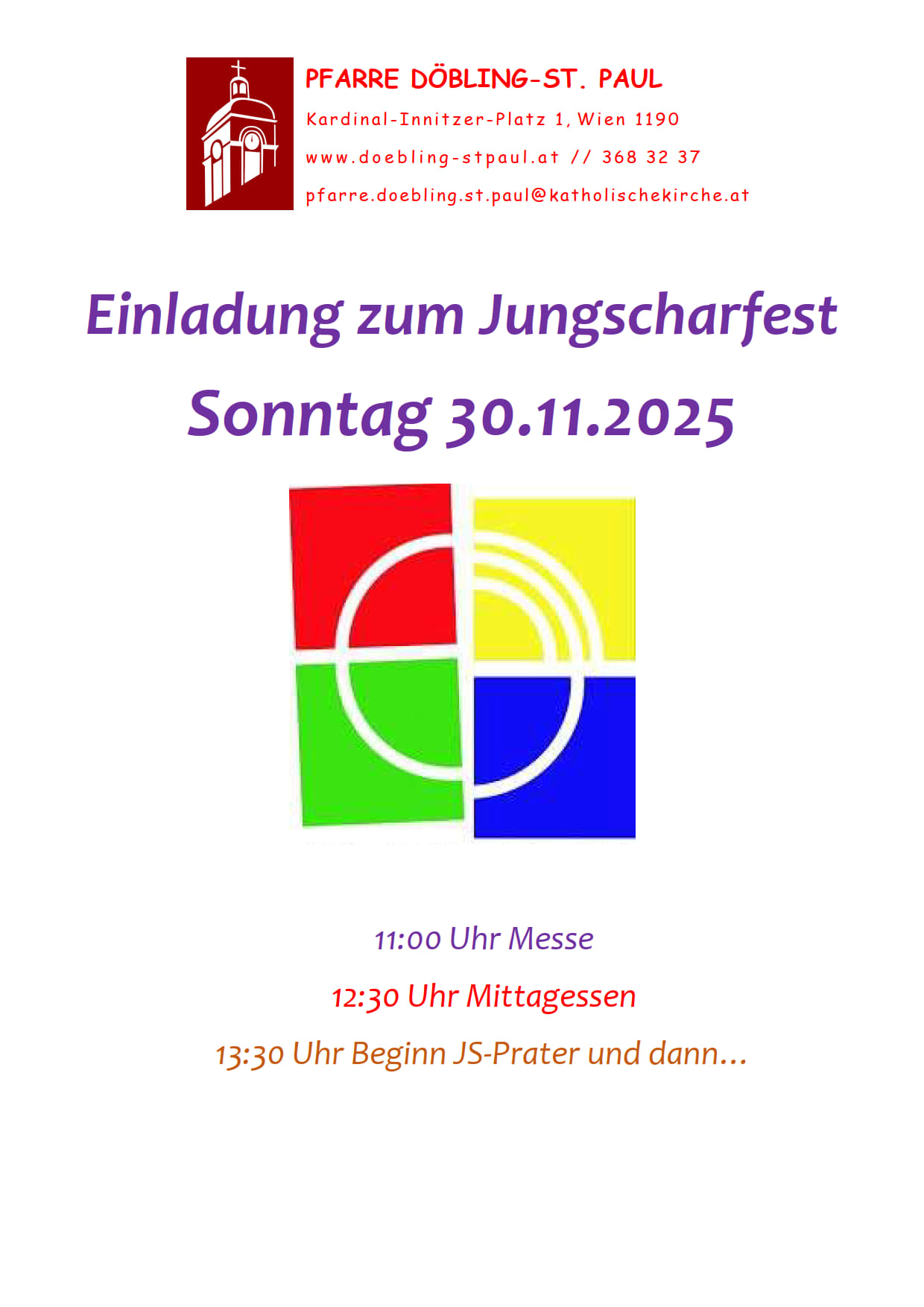 Messe um 11 Uhr, gemeinsames Mittagessen und anschließend Jungscharprater