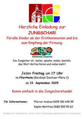 Also, herzliche Einladung an alle Kinder zwischen Erstkommunion und Firmung, wir freuen uns, wenn ihr vorbeischaut!