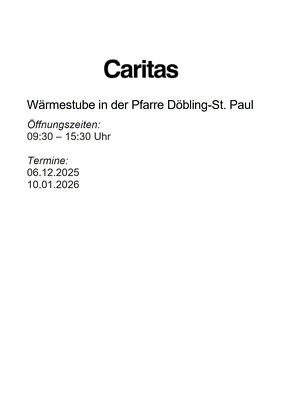 An einigen Samstagen in der Winterzeit begrüßen wir in unserem kleinen Pfarrsaal etwa 50 Gäste. Nach einem schmackhaften Frühstück (insbesondere die Schinken-Käse-Toasts sind sehr beliebt!) gibt es zu Mittag verschiedene reichhaltige Suppen, für zahlreiche Mehlspeisen ist gesorgt. Bei Kinderpunsch und Kaffee in großen Mengen entstehen viele schöne Gespräche, und wir alle, Gäste und Mithelfende, gehen reich beschenkt nach Hause!
