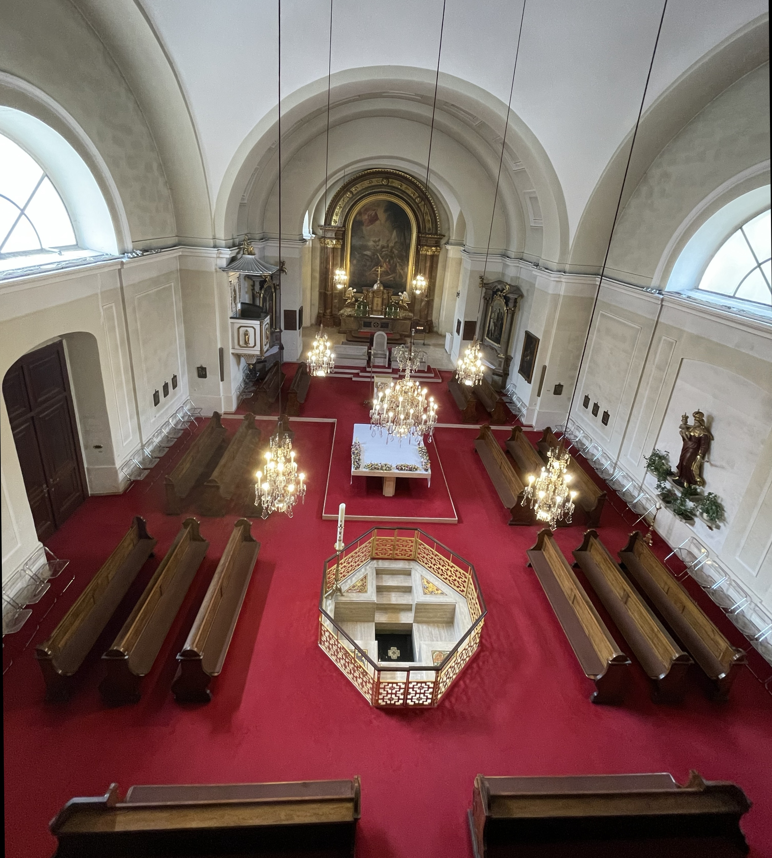 Als 1869 Pfarrer Hulesch die Pfarre Döbling übernahm, machte die Kirche innen einen armseligen und vernachlässigten Eindruck. Hulesch ließ 1870, um das einzige Schmuckstück von Bedeutung, Schönmanns Paulusbild, eine in antikem Stil gehaltene Umrahmung, eine Art Triumphbogen, von dem Döblinger Baumeister Anton Schegar entwerfen, zwei flankierende marmorisierte Säulen und Pilaster mit korinthischen Kapitellen und über dem Bild einen Halbkreisbogen, verziert mit drei vergoldeten Engelsköpfen, Ähren und Weintrauben . Die gesamte Komposition verleiht dem von vergoldeten „Ochsenaugen“ eingerahmten Bild vornehme Feierlichkeit und entspricht eigentlich ziemlich der Ausgestaltung historisierender Innenräume der Wiener Ringstraßenbauten. In ihren klassischen Schmuckformen passt sie gut zu dem klassizistischen Kirchenbau des frühen 19. Jahrhunderts.