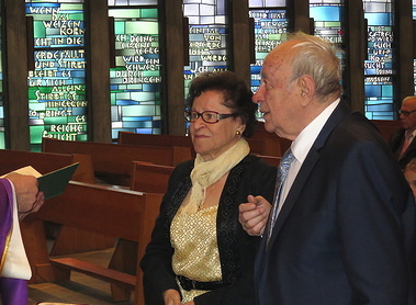 ... traten heute Grete und Herbert Moucka, um ihre Goldene Hochzeit zu feiern. Mit ihnen freuten sich Pater Thaddäus und die ganze Pfarrfamilie: Nach dem Festgottesdienst wurde im Pfarrheim auf das Jubelpaar angestoßen und bei Live-Musik gefeiert. Mögen ihnen noch viele gemeinsame Jahre geschenkt sein!