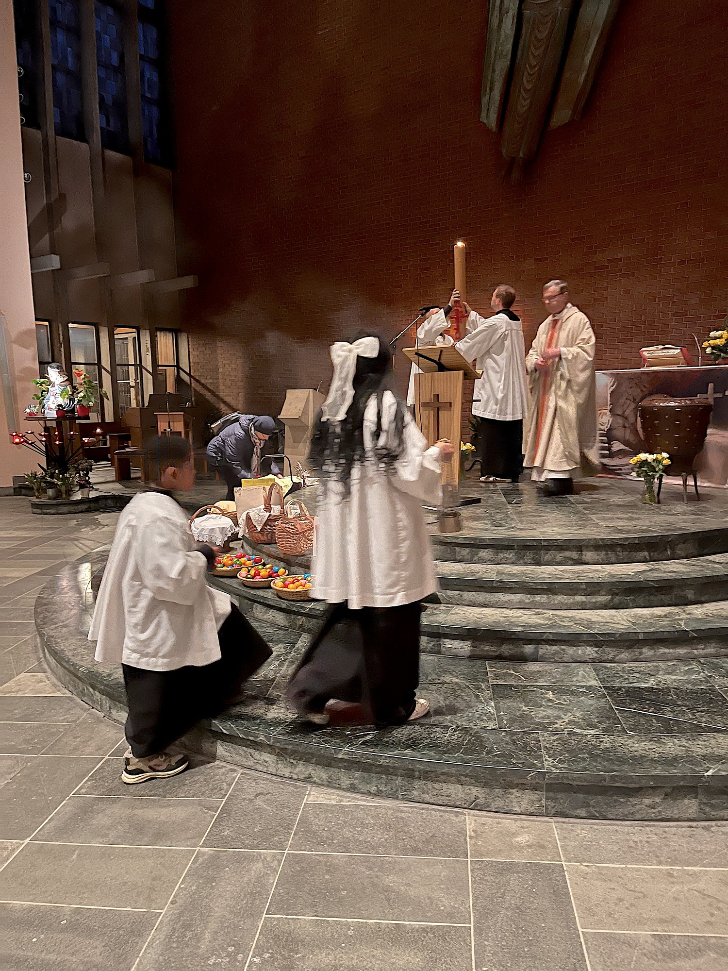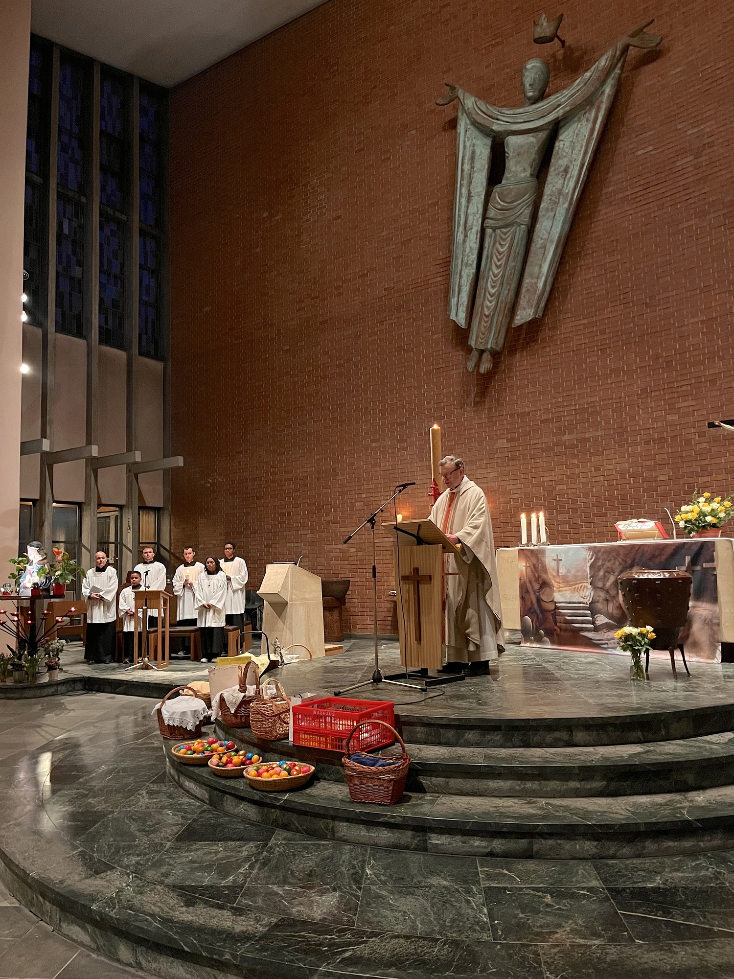 Von Palmsonntag bis Ostersonntag kamen auch in diesem Jahr zahlreiche Gemeindemitglieder in unserer Kirche zusammen, um die Kar- und Osterliturgie gemeinsam zu feiern. Im Miteinander von Beten, Singen, Trauern und Feiern wurde erneut erfahrbar, welche Kraft in diesen Tagen liegt und welche Hoffnungsenergie das Osterfest beinhaltet.