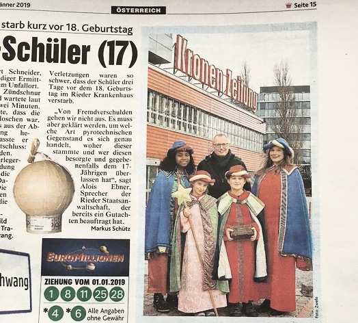 Ganz besondere Auftritte hatten die Sternsinger unserer Pfarre auch heuer wieder bei den Redaktionen zweier großer Tageszeitungen, die sich beide in unserem Pfarrgebiet befinden. Sowohl in der „Kronen Zeitung” als auch im „KURIER” waren unsere Kinder mit einem kurzen Bildbericht vertreten. Außerdem statteten die Unterheiligenstädter Sternsinger auch wieder den Vienna Capitals einen Besuch ab. Näheres dazu erfahren Sie hier.