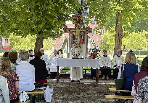 Zu Fronleichnam feierten wir heuer erstmals wieder einen Gottesdienst am 12. Februar-Platz. Die anschließende Prozession führte uns in die Pfarre Nußdorf, wo wir den Festsegen erhielten und den Vormittag gemütlich ausklingen ließen.