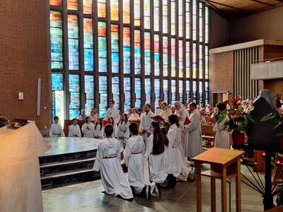 Am 19. Juni feierten wir wie jedes Jahr den Fronleichnamsgottesdienst am 12.-Februar-Platz. Die Prozession und die Abschlussfeier fanden auch diesmal wieder gemeinsam mit der Pfarre Nußdorf statt – diesmal luden wir alle in unsere Kirche ein.