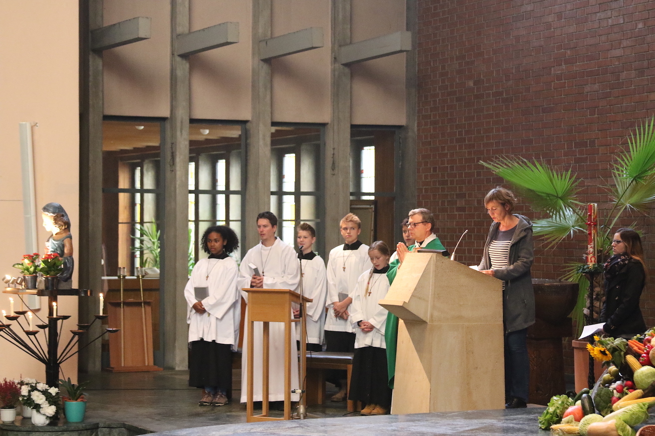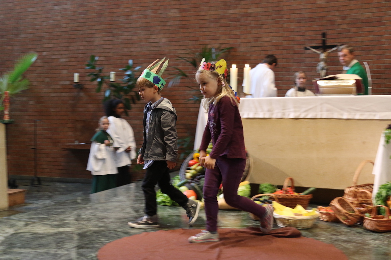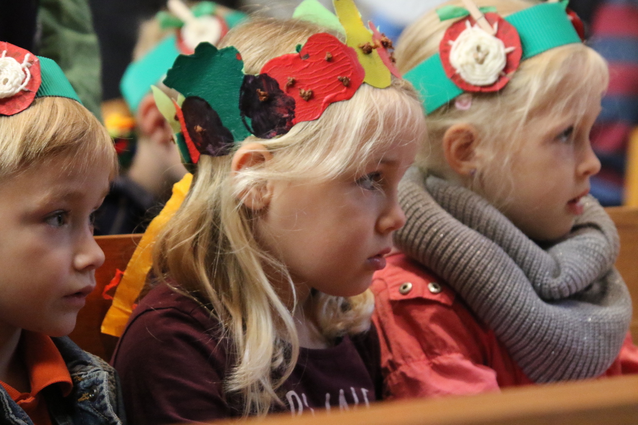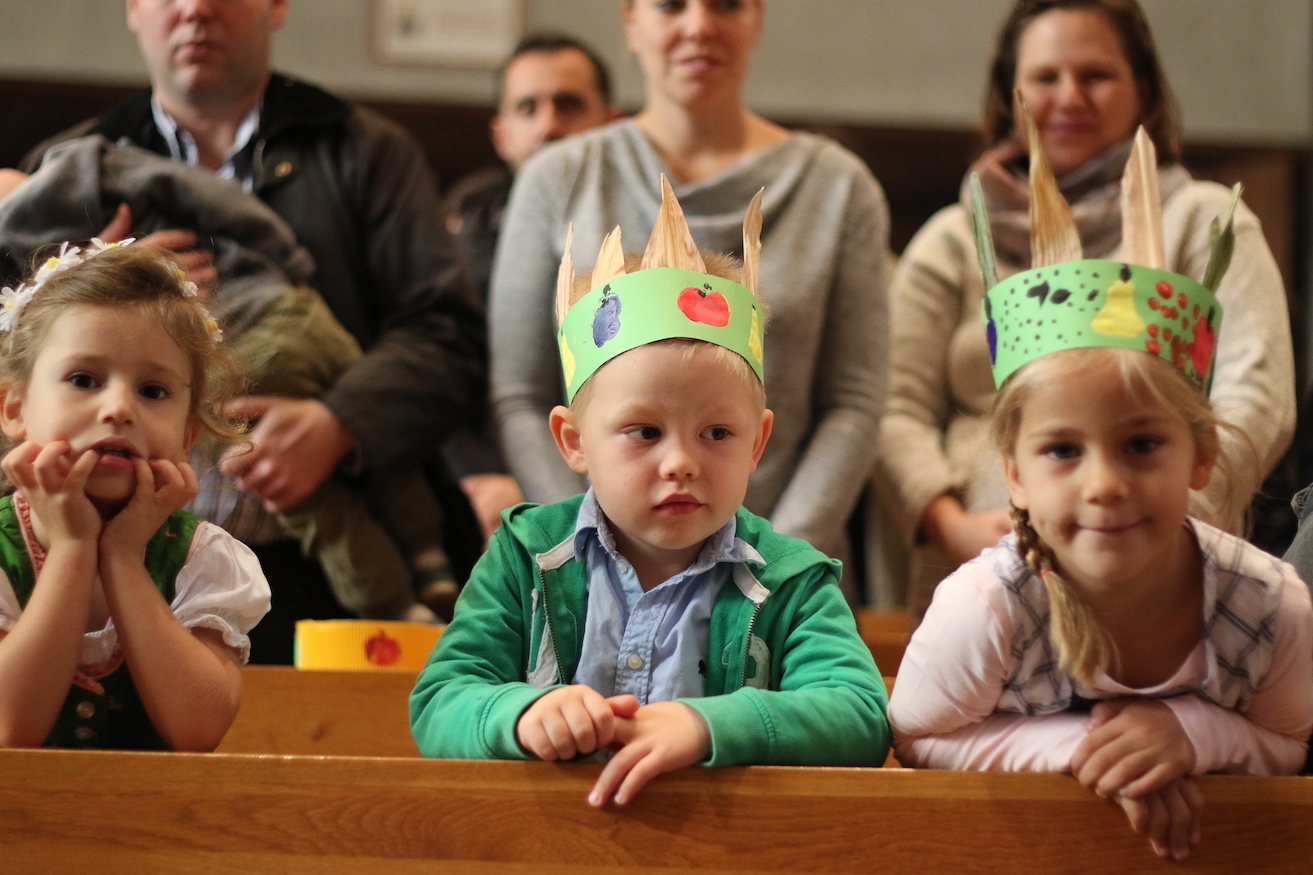 In einem kurzen Schauspiel führten uns die Kinder lebendig vor Augen, dass alles, was wir zum Leben brauchen, ein Geschenk Gottes ist: Nur mit seiner Hilfe kann aus vielen kleinen Samenkörnern schlussendlich Brot werden, das uns satt macht.