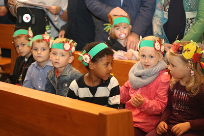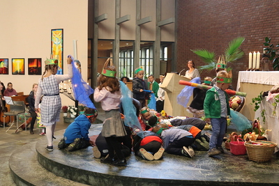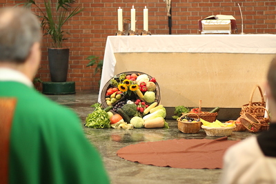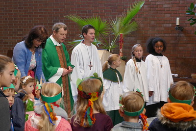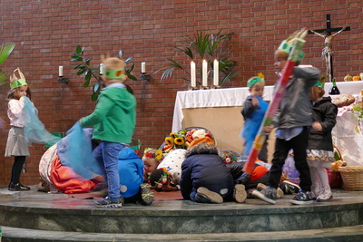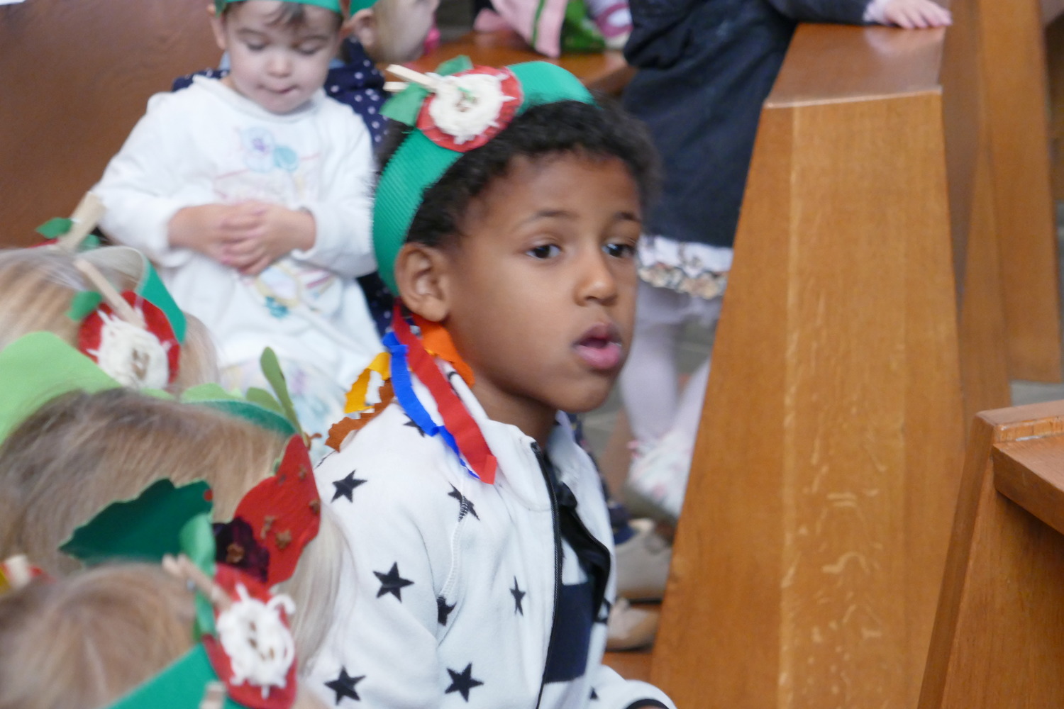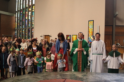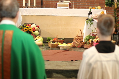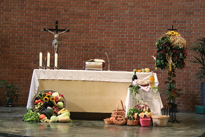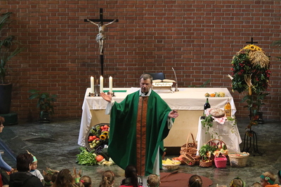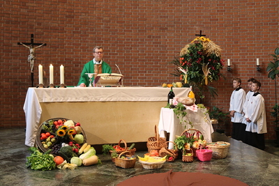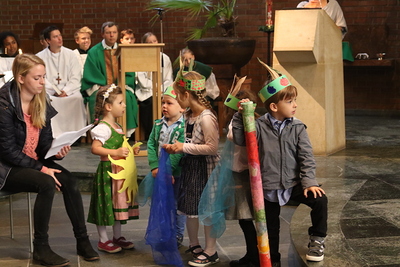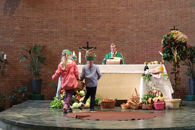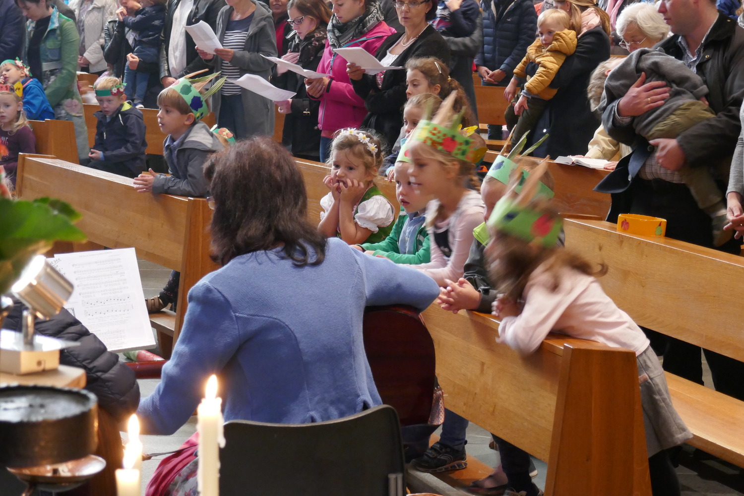 In einem kurzen Schauspiel führten uns die Kinder lebendig vor Augen, dass alles, was wir zum Leben brauchen, ein Geschenk Gottes ist: Nur mit seiner Hilfe kann aus vielen kleinen Samenkörnern schlussendlich Brot werden, das uns satt macht.