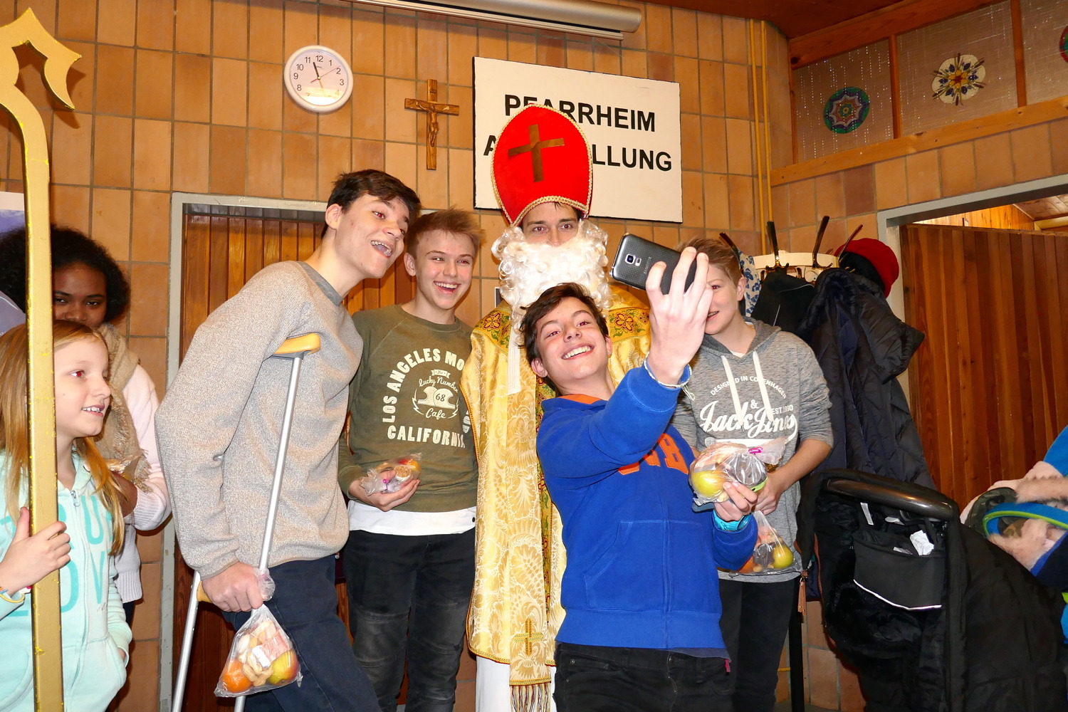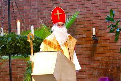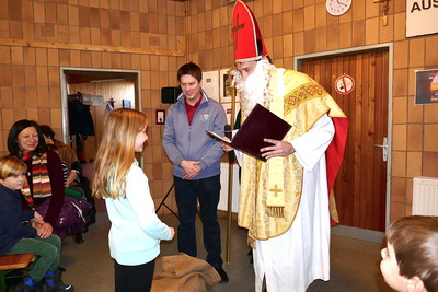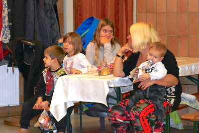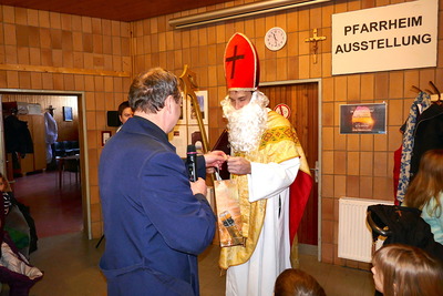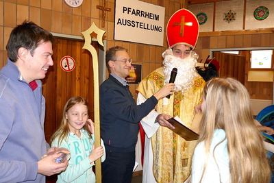 Nach dem 10-Uhr-Gottesdienst waren alle Kinder, Eltern und Großeltern ins Pfarrheim eingeladen, wo auch Bischof Nikolaus vorbeikam und für alle Kinder eine Kleinigkeit bereithielt.