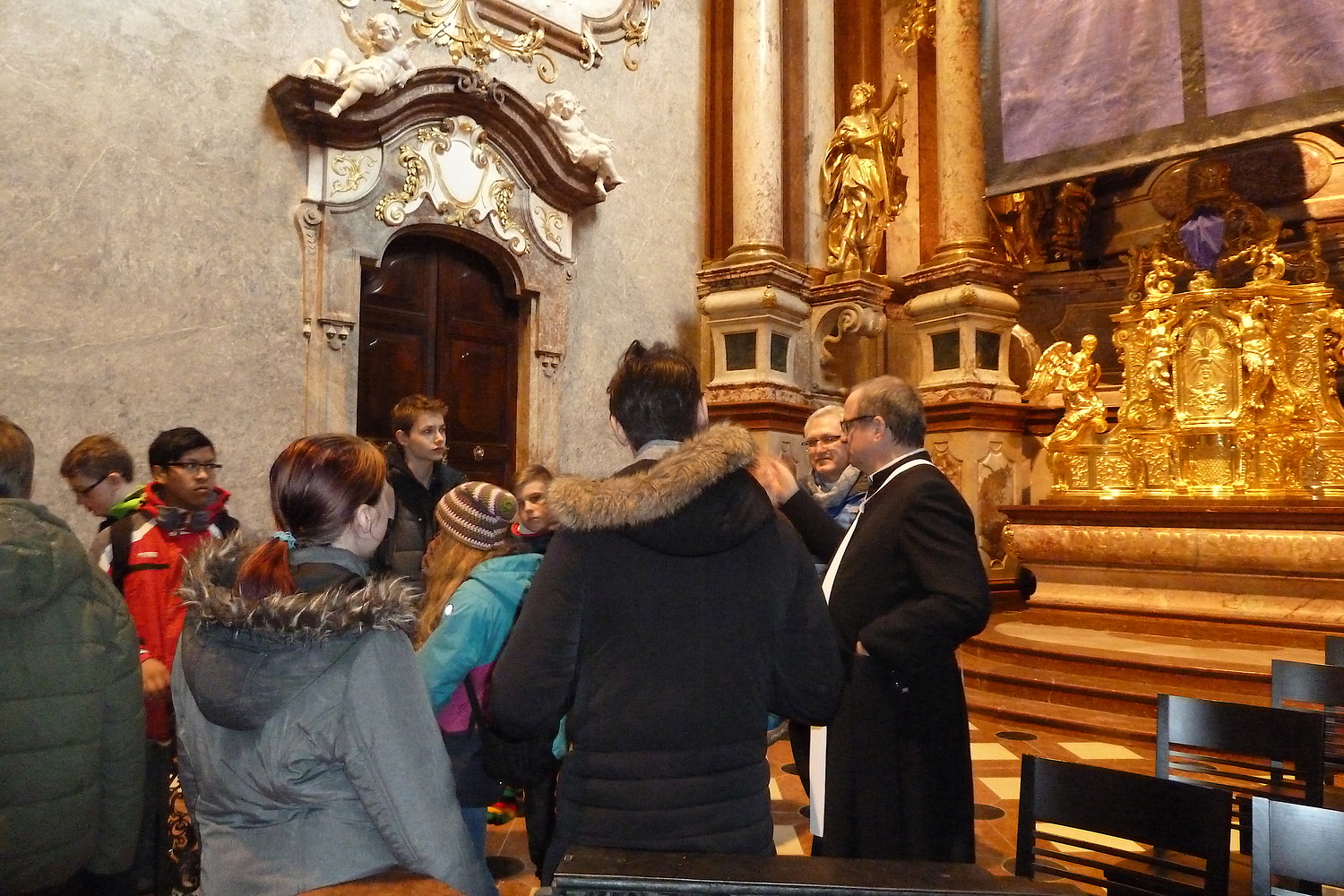 Vom Kahlenberg ging es weiter zum Stift Klosterneuburg, wo die Jugendlichen darum baten, am 15. April von Probst Bernhard gefirmt zu werden. Den Abschluss bildete eine kurze Kirchenführung, bei der natürlich auch ein Besuch beim berühmten Verduner Altar nicht fehlen durfte.