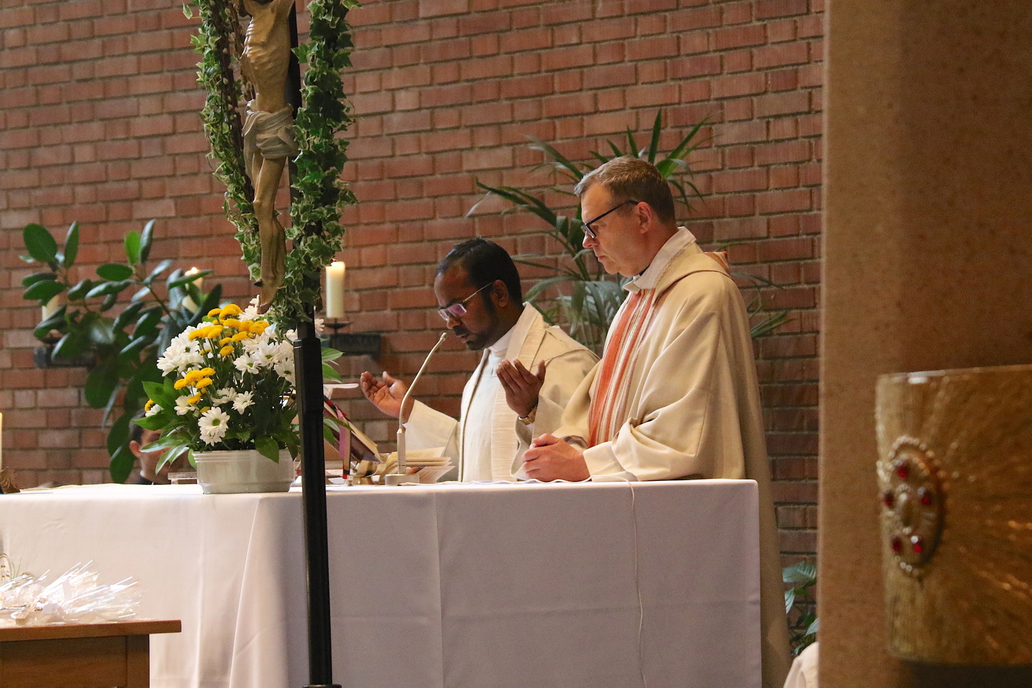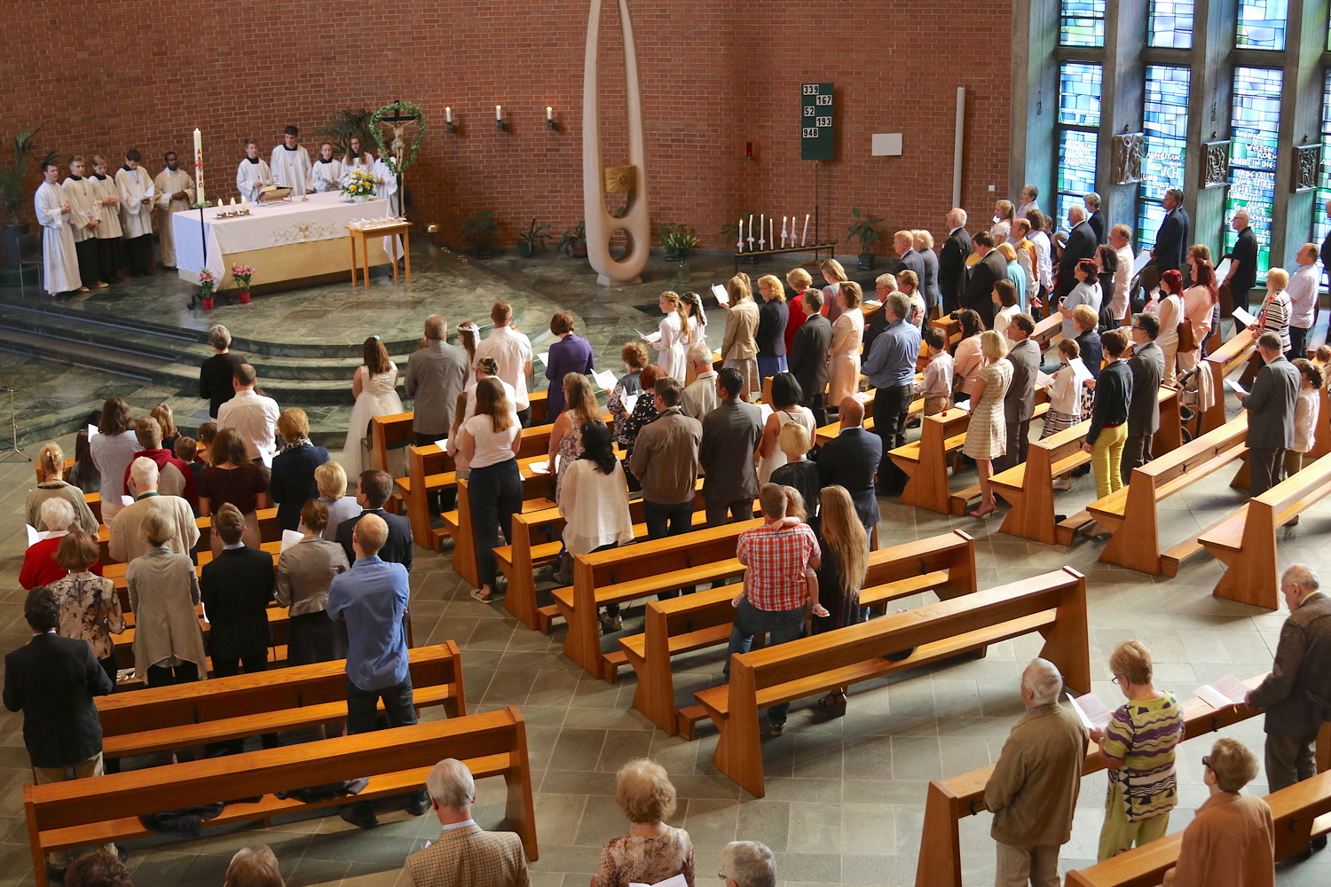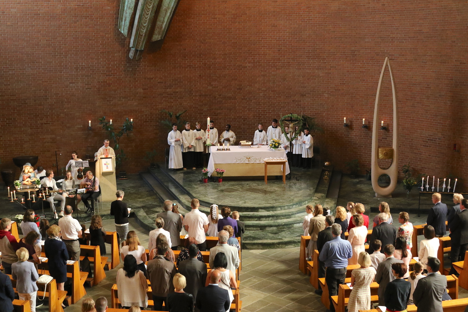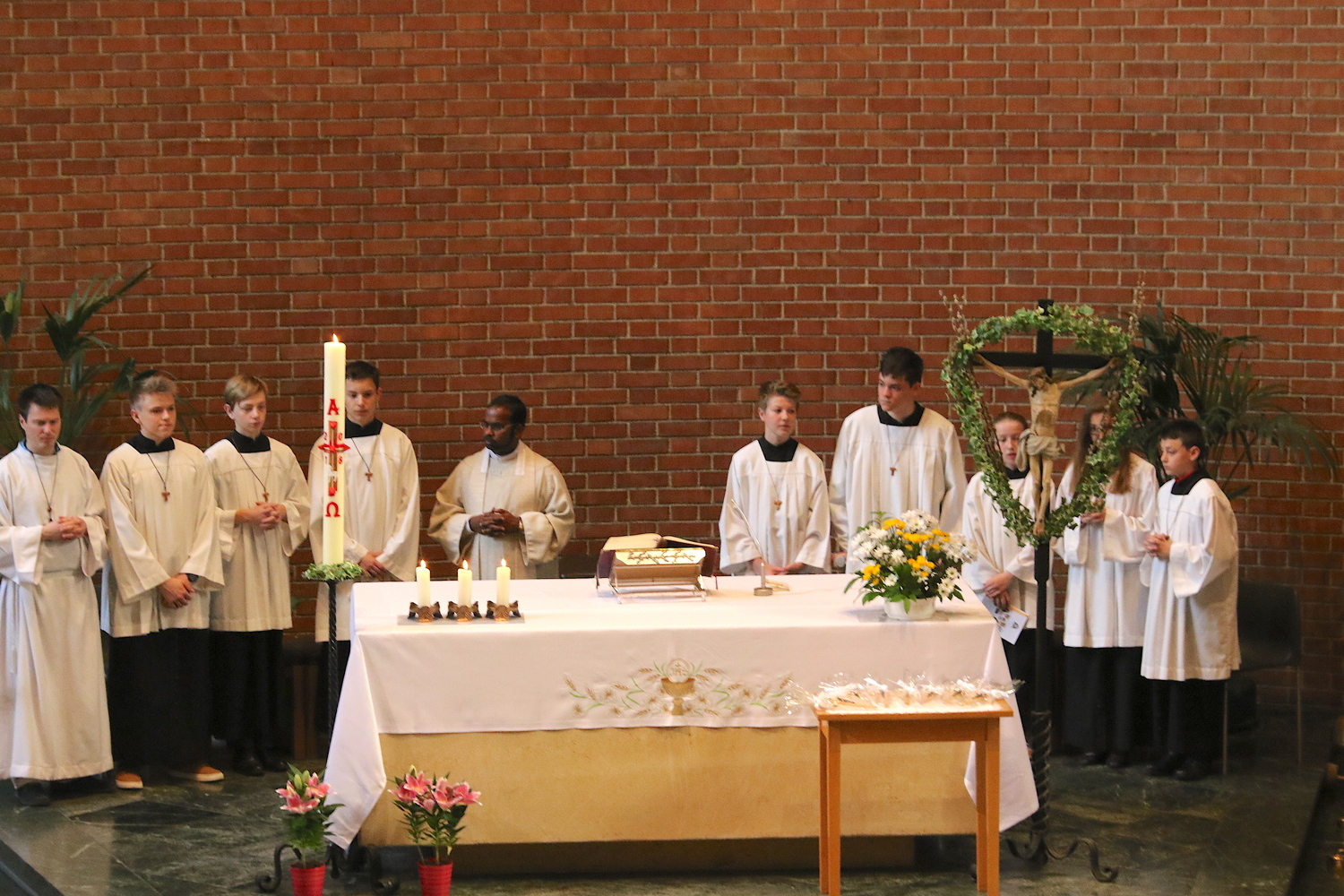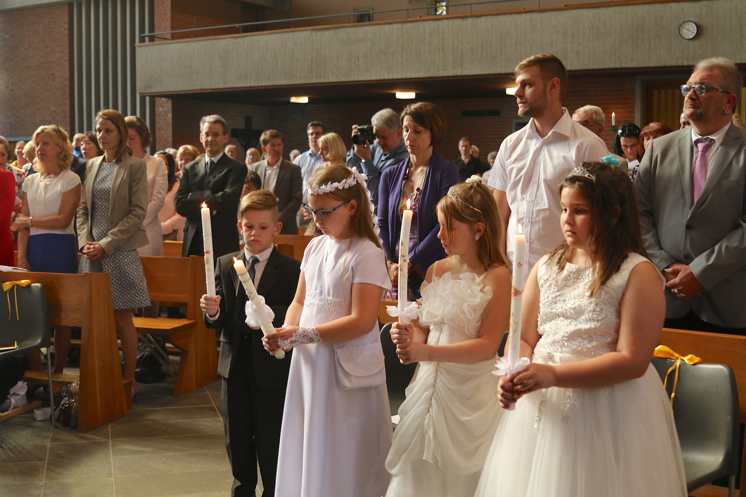 Viele Wochen und Monate haben sich unsere Erstkommunionkinder auf diesen Tag vorbereitet – zu Christi Himmelfahrt war es schließlich soweit: Jesus war plötzlich „zum Greifen nah”! P. Thaddäus Schatkovsky ermunterte die Kinder, dass der ersten Kommunion viele weitere Begegnungen mit Jesus folgen sollen – Gelegenheit dazu gibt es in unserer Kirche Tag für Tag.