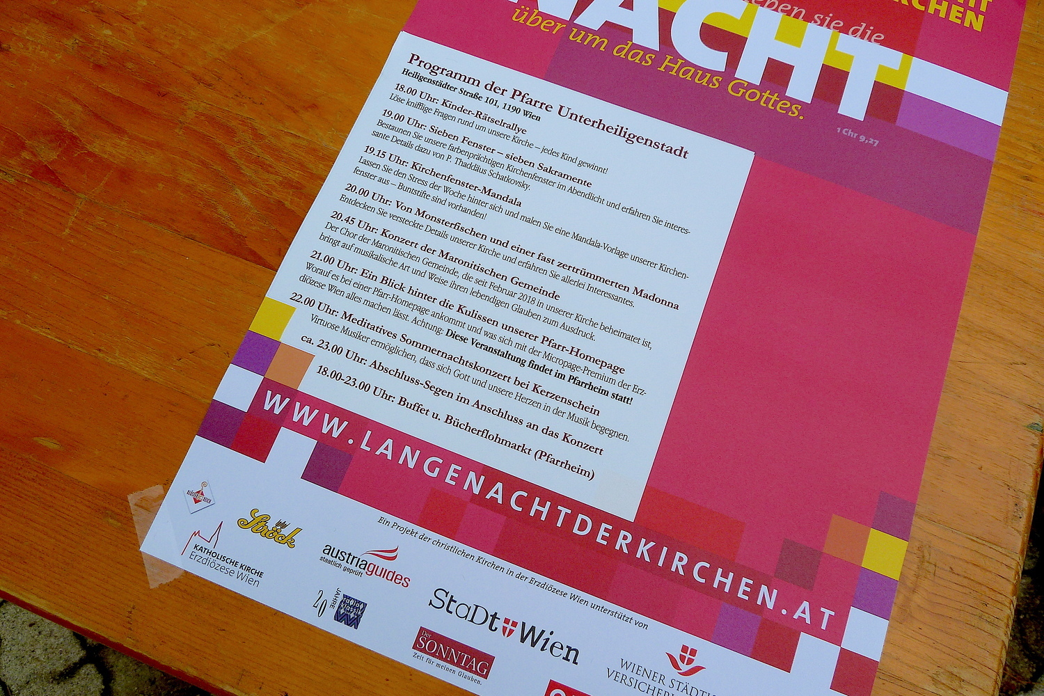 Der Abend startete um 18 Uhr mit einer Kinder-Rätselrallye, danach erklärte P. Thaddäus Schatkovsky die farbenprächtigen Kirchenfenster mit den sieben Sakramenten. Anschließend konnten die Besucher eine Mandala-Vorlage unserer Kirchenfenster bemalen, sich interessante Details über unsere Kirche anhören und einen Blick hinter die Kulissen unserer Homepage werfen.