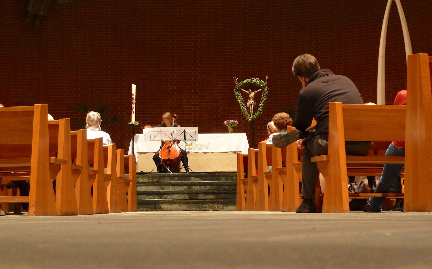 Dazwischen gab es die Möglichkeit sich beim Buffet zu stärken und bei unserem Bücherflohmarkt nach Schnäppchen zu suchen. Nach zwei stimmungsvollen Konzerten entließ uns Pater Thaddäus mit dem Segen Gottes in die Nacht.
