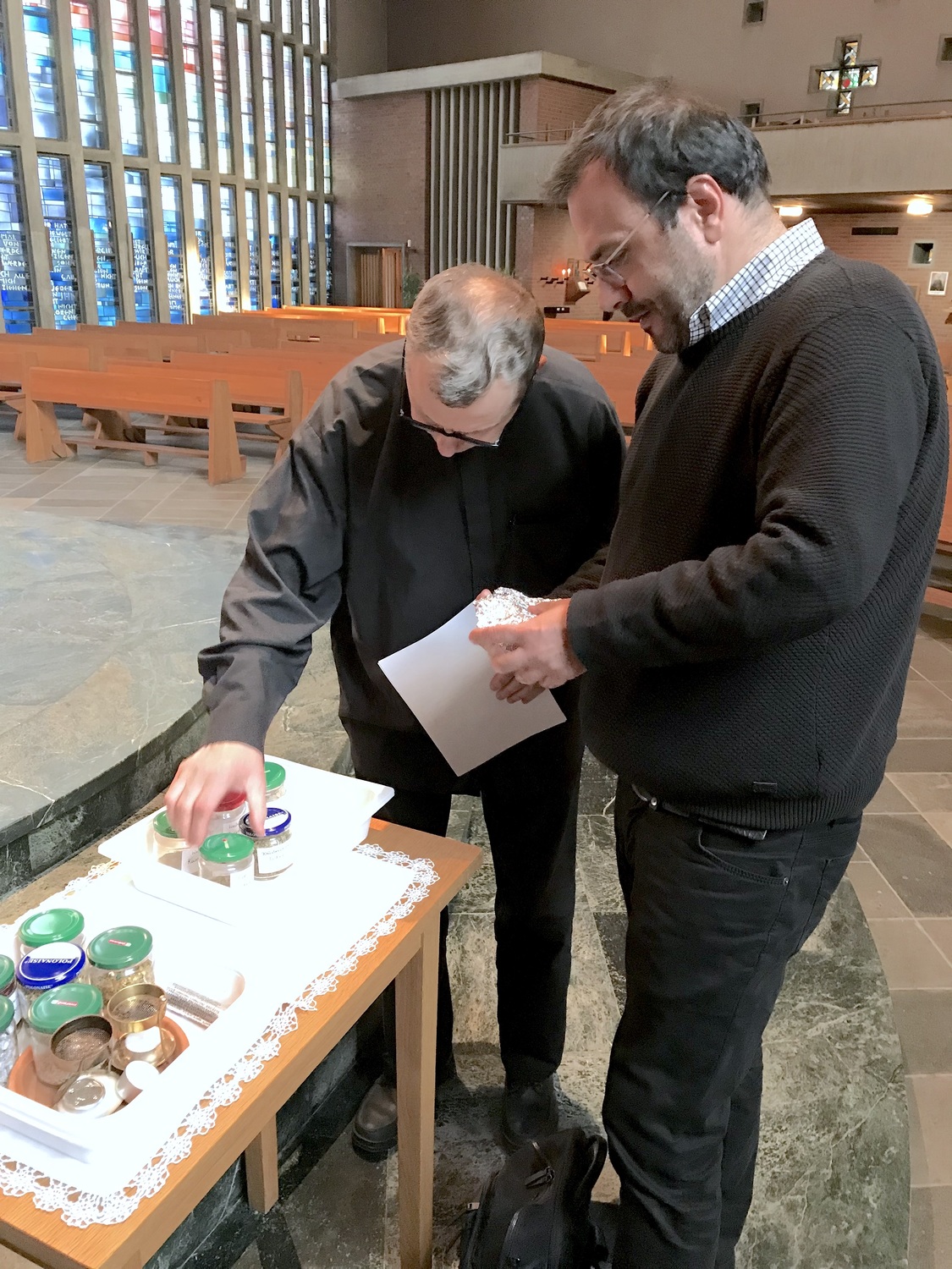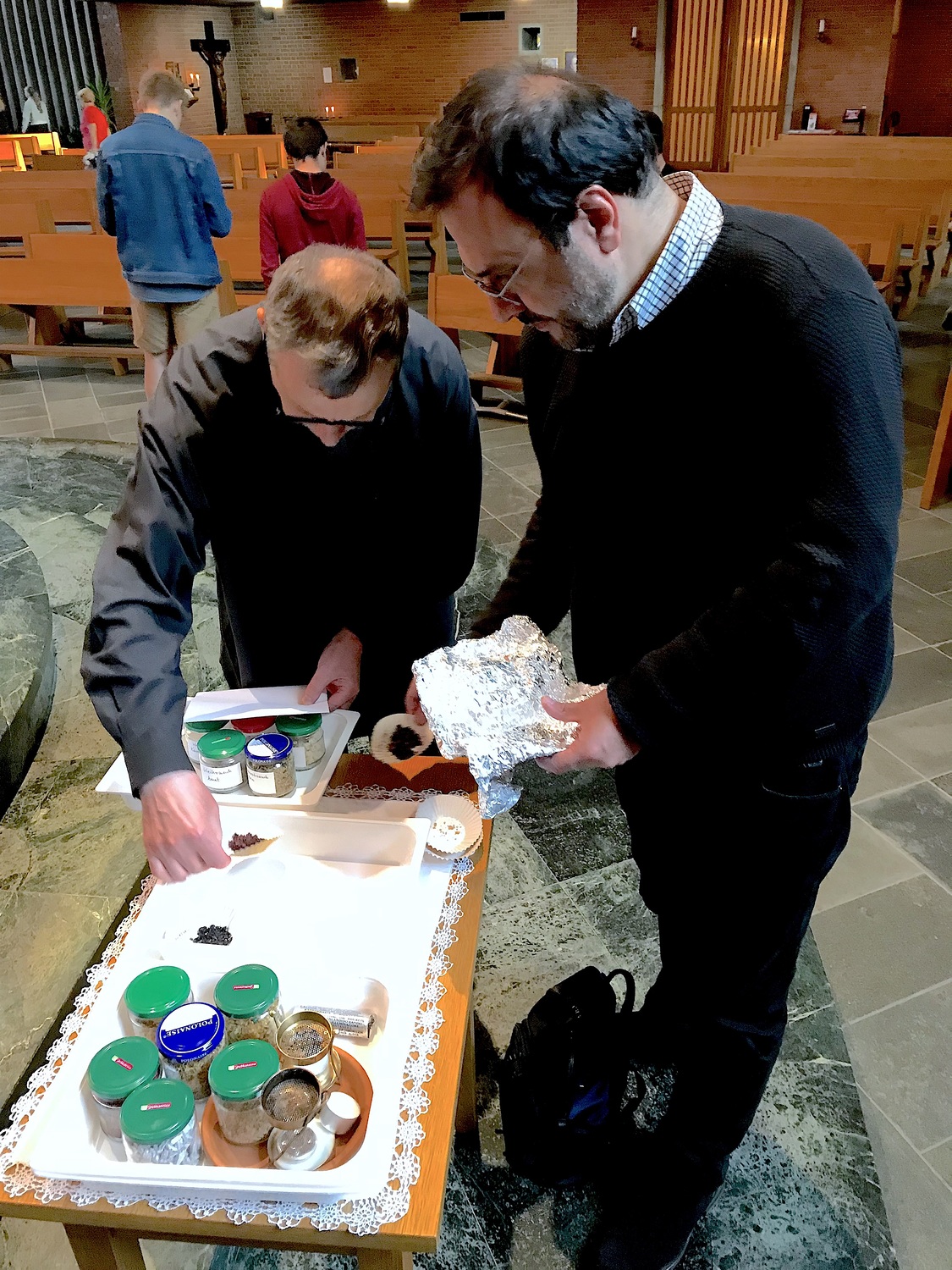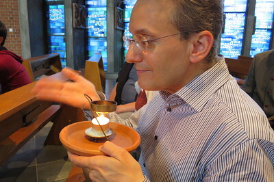 Der Abend startete um 18 Uhr mit einem interessanten Vortrag von Herrn Leo, unserem blinden Organisten, der uns seine ganz speziellen Geheimnisse und Tricks verriet. Danach stand ein Weihrauch-"Schnupper"-Kurs auf dem Programm, es folgten zwei Konzerte und ein Diavortrag, bei dem man unsere Kirche aus neuen Blickwinkeln entdecken konnte.