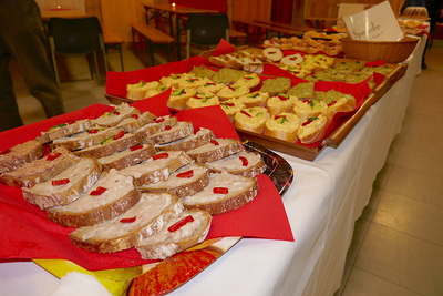 Im Anschluss an den Gottesdienst, der unter dem biblischen Leitthema "Sie waren uns gegenüber ungewöhnlich freundlich" stand, waren alle Anwesenden noch zu einem gemütlichen Ausklang im Pfarrheim eingeladen.