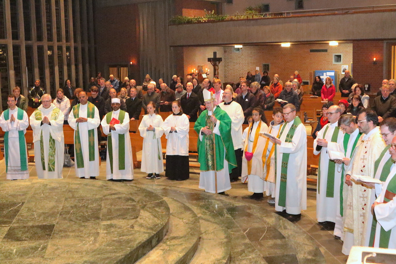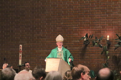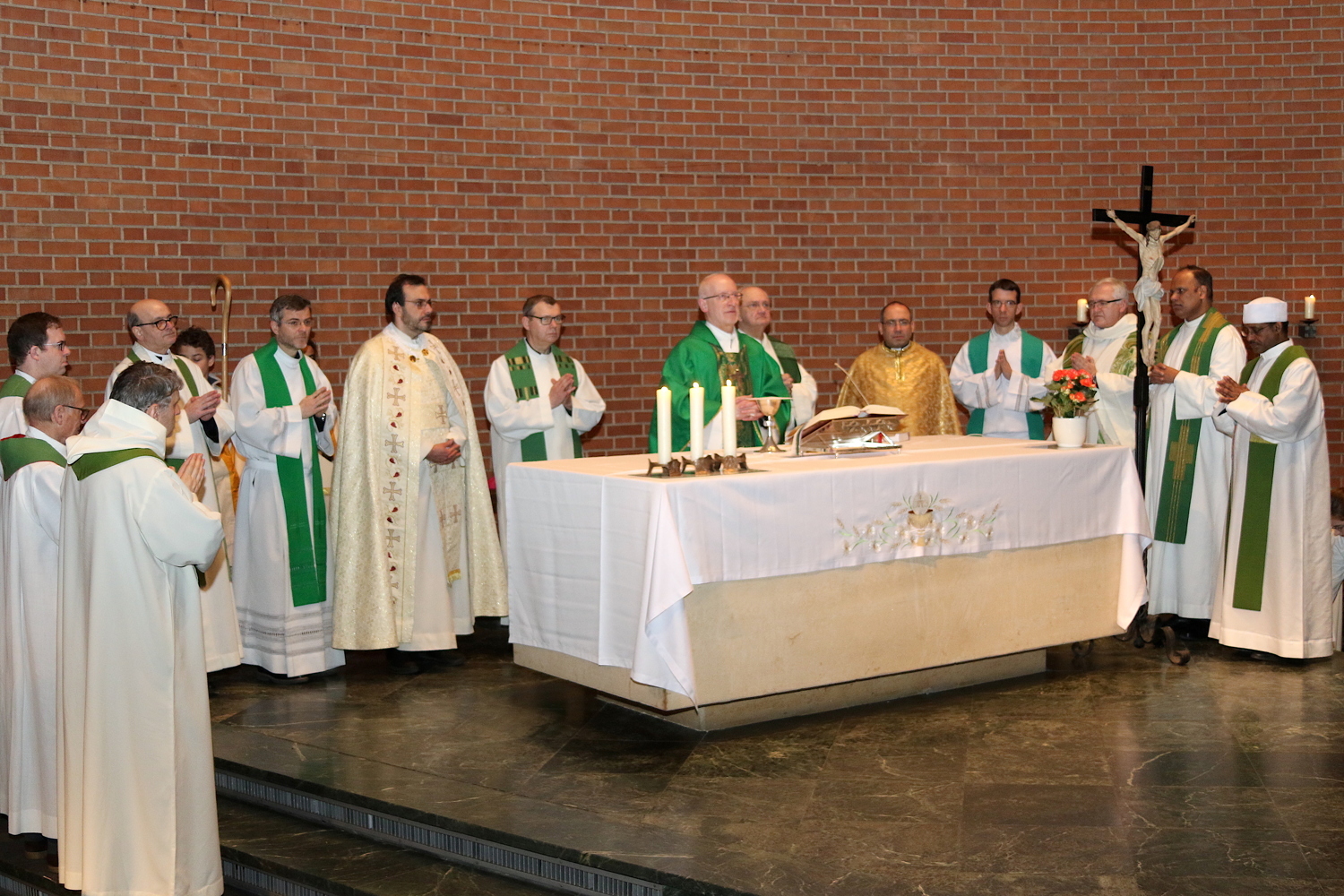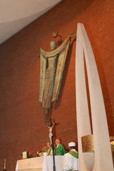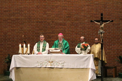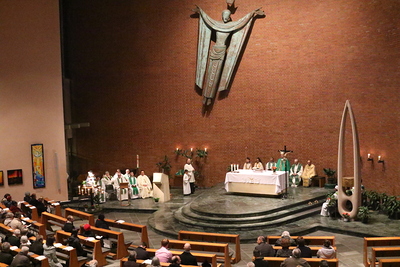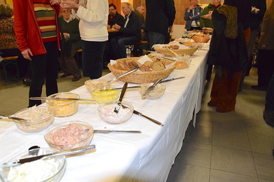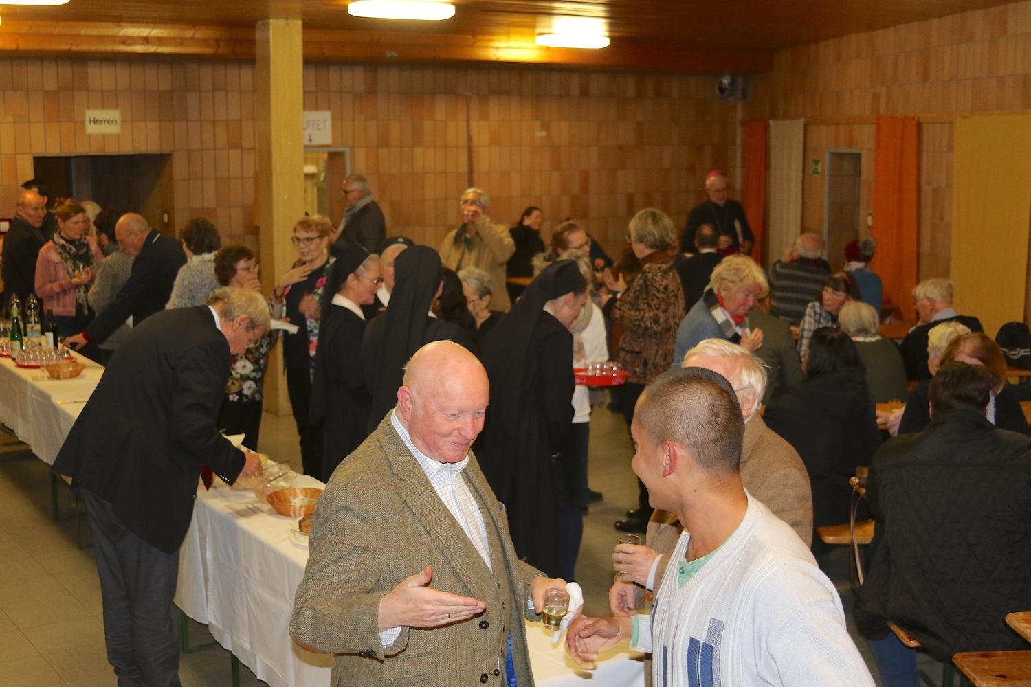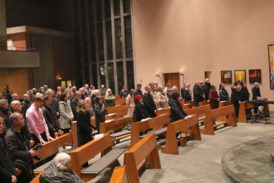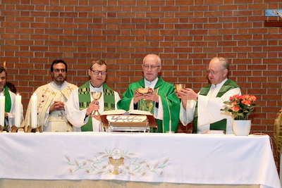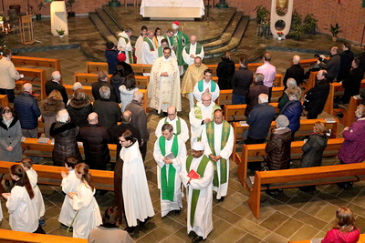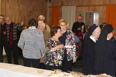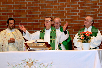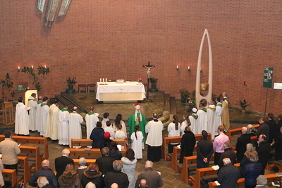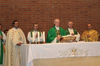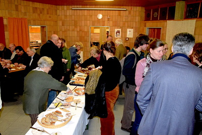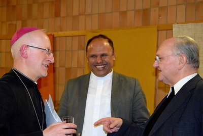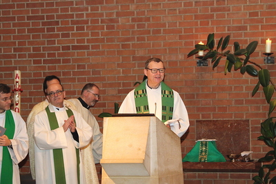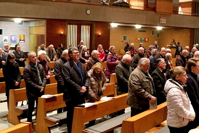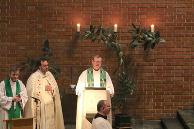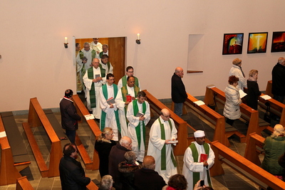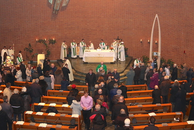 Gut, dass die Unterheiligenstädter Kirche so groß ist! So war es möglich, dass sich neun Pfarren, 13 Priester und ein Bischof an diesem Abend unter einem Dach versammeln konnten. Im Anschluss an den Gottesdienst warteten noch allerlei Köstlichkeiten im Pfarrheim auf die Messbesucher. In zwangloser Atmosphäre gab es jede Menge Gelegenheit zu Gesprächen und gegenseitigem Austausch.