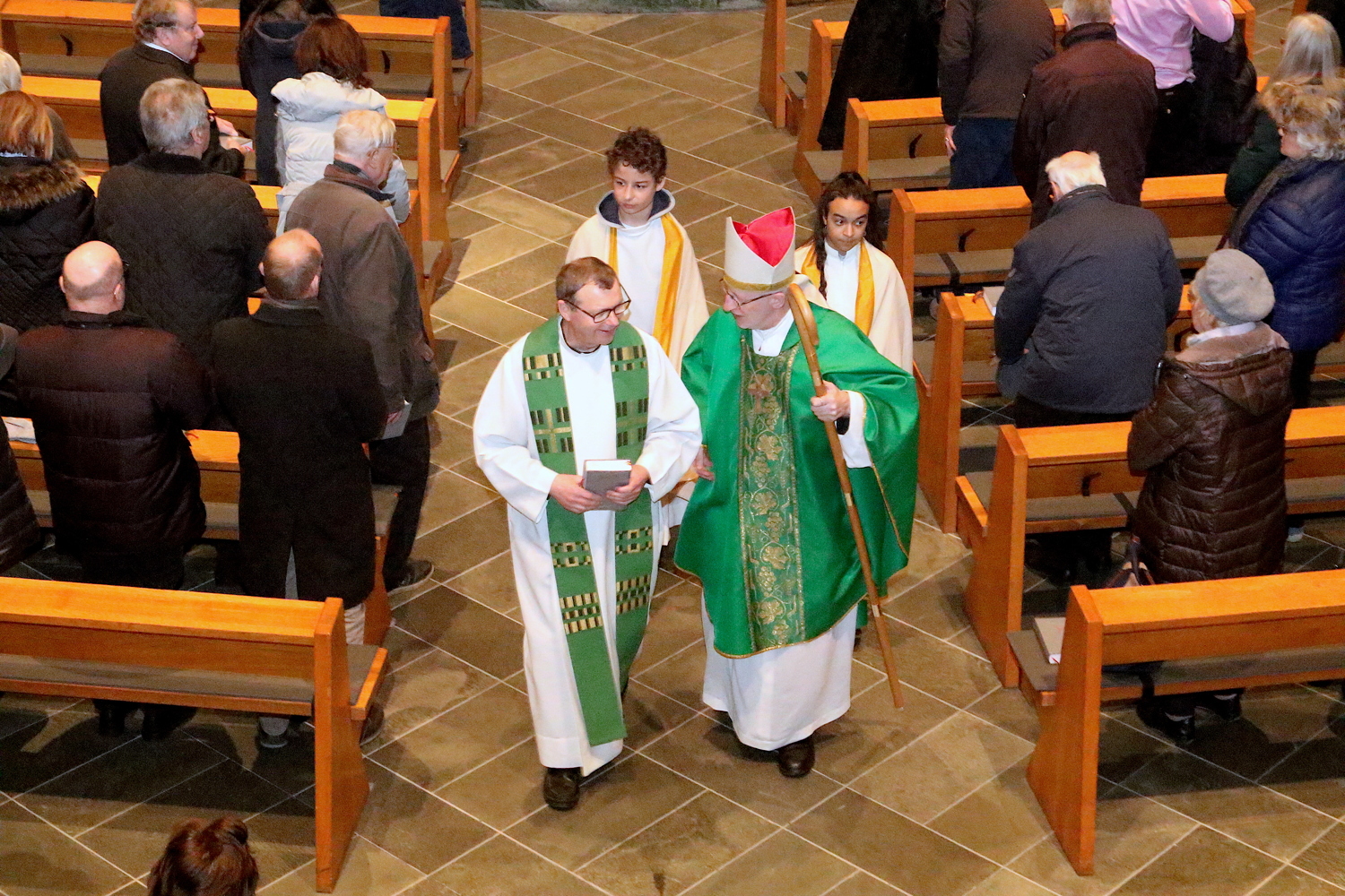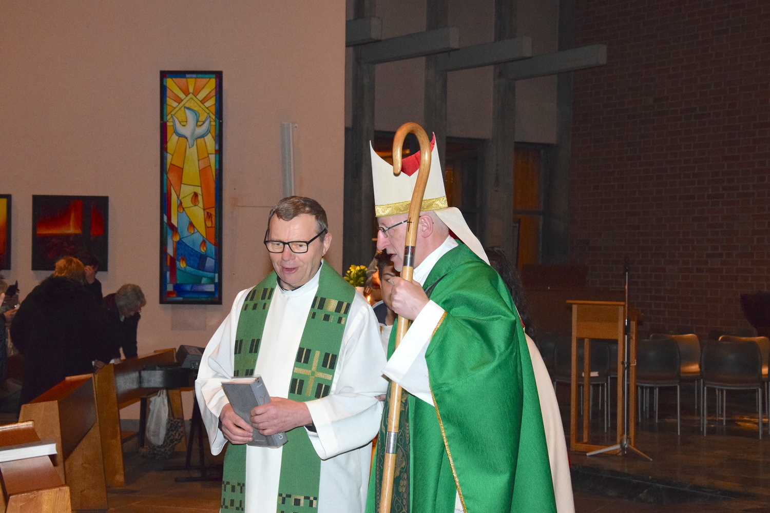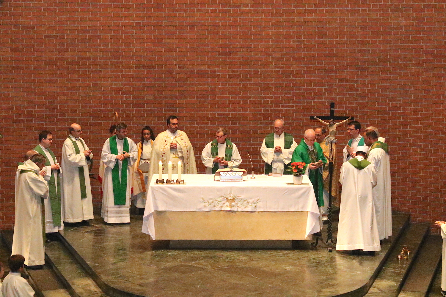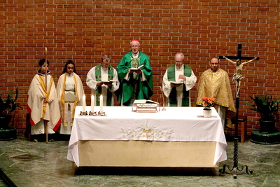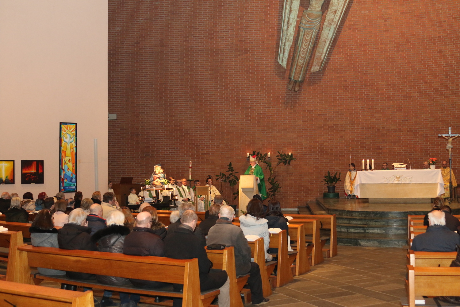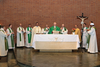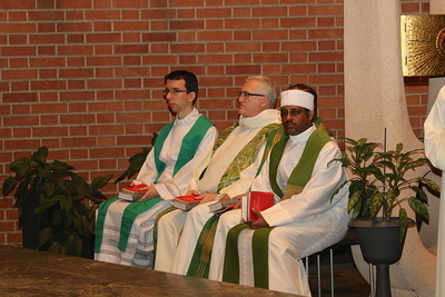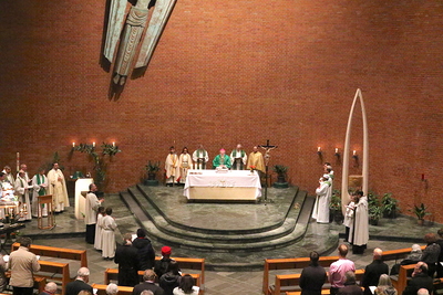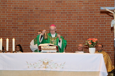 Gut, dass die Unterheiligenstädter Kirche so groß ist! So war es möglich, dass sich neun Pfarren, 13 Priester und ein Bischof an diesem Abend unter einem Dach versammeln konnten. Im Anschluss an den Gottesdienst warteten noch allerlei Köstlichkeiten im Pfarrheim auf die Messbesucher. In zwangloser Atmosphäre gab es jede Menge Gelegenheit zu Gesprächen und gegenseitigem Austausch.