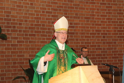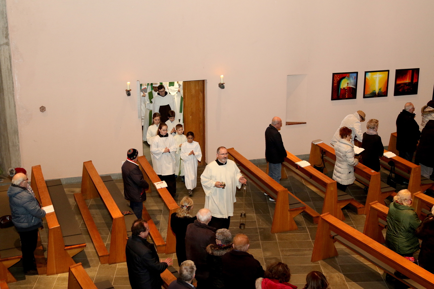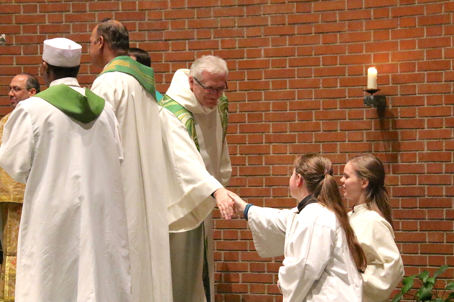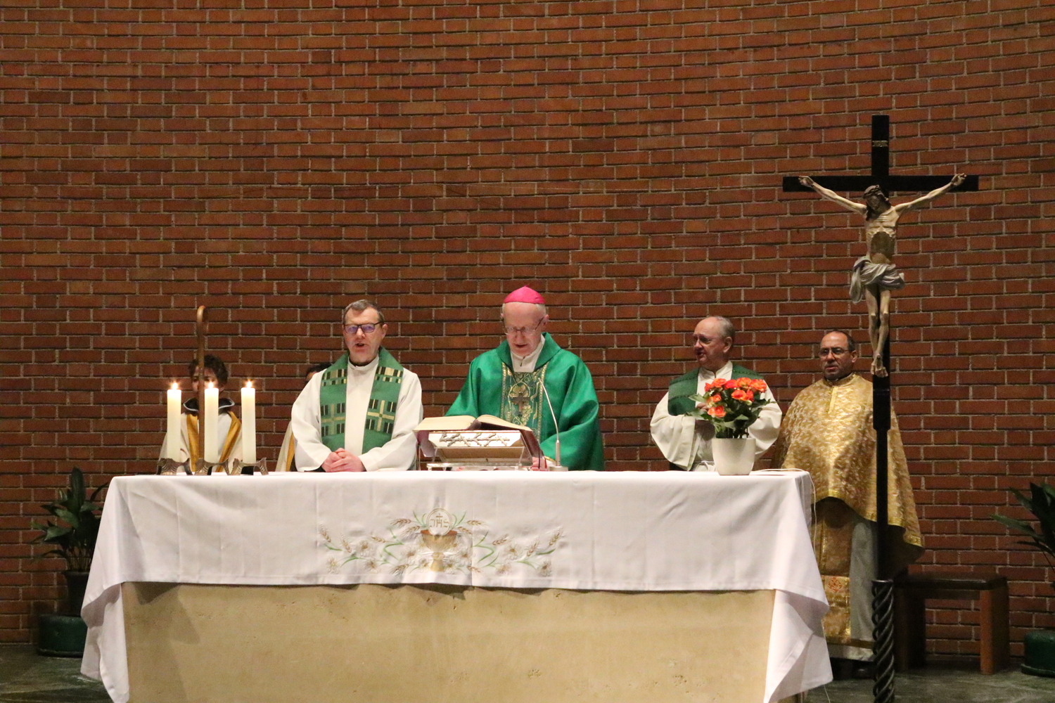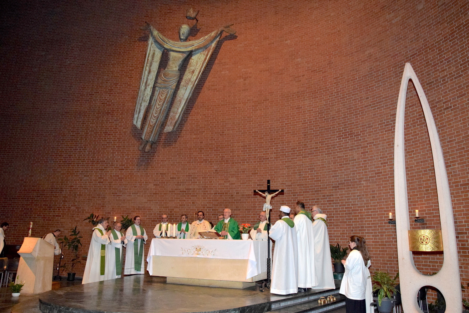 Gut, dass die Unterheiligenstädter Kirche so groß ist! So war es möglich, dass sich neun Pfarren, 13 Priester und ein Bischof an diesem Abend unter einem Dach versammeln konnten. Im Anschluss an den Gottesdienst warteten noch allerlei Köstlichkeiten im Pfarrheim auf die Messbesucher. In zwangloser Atmosphäre gab es jede Menge Gelegenheit zu Gesprächen und gegenseitigem Austausch.