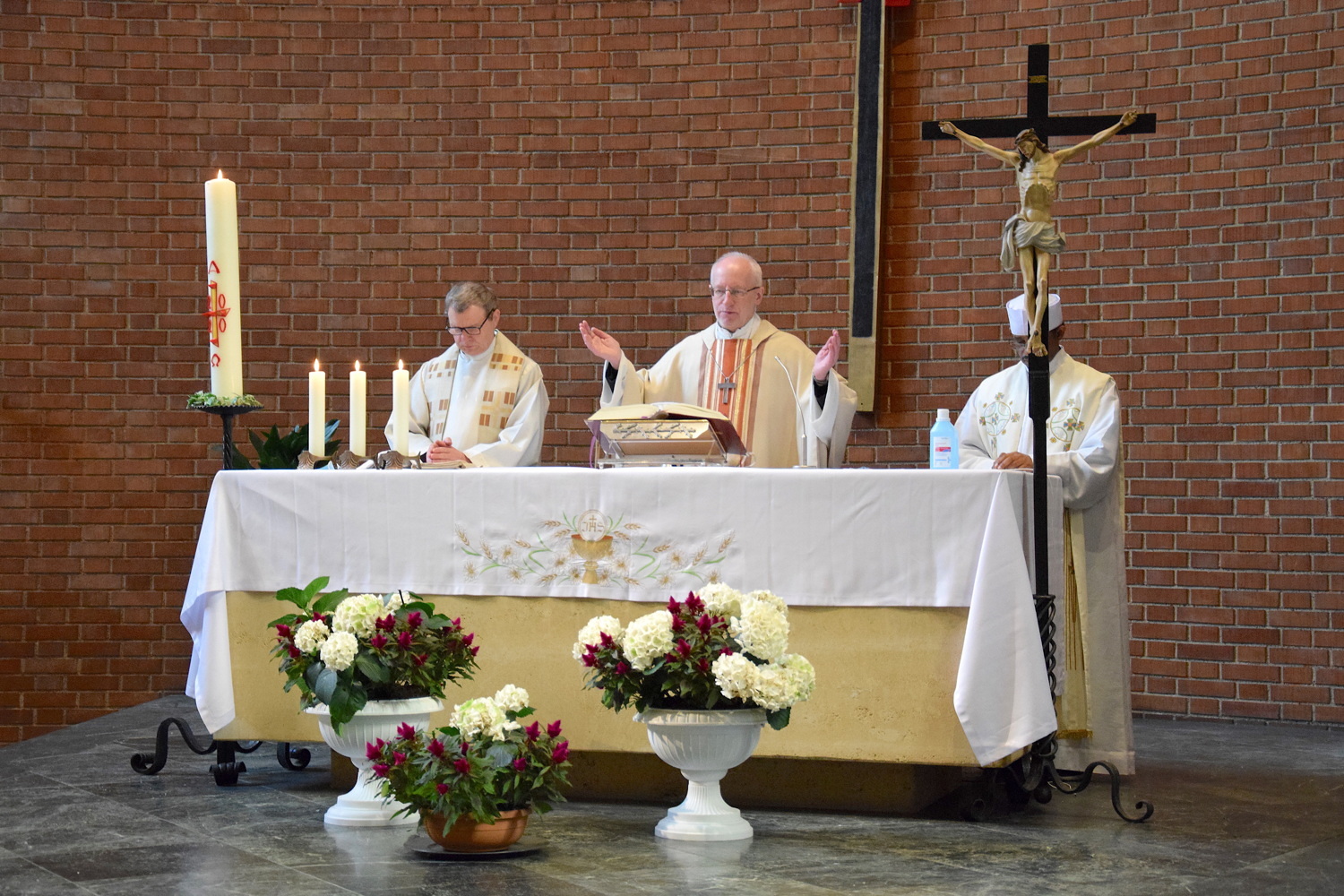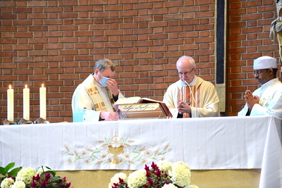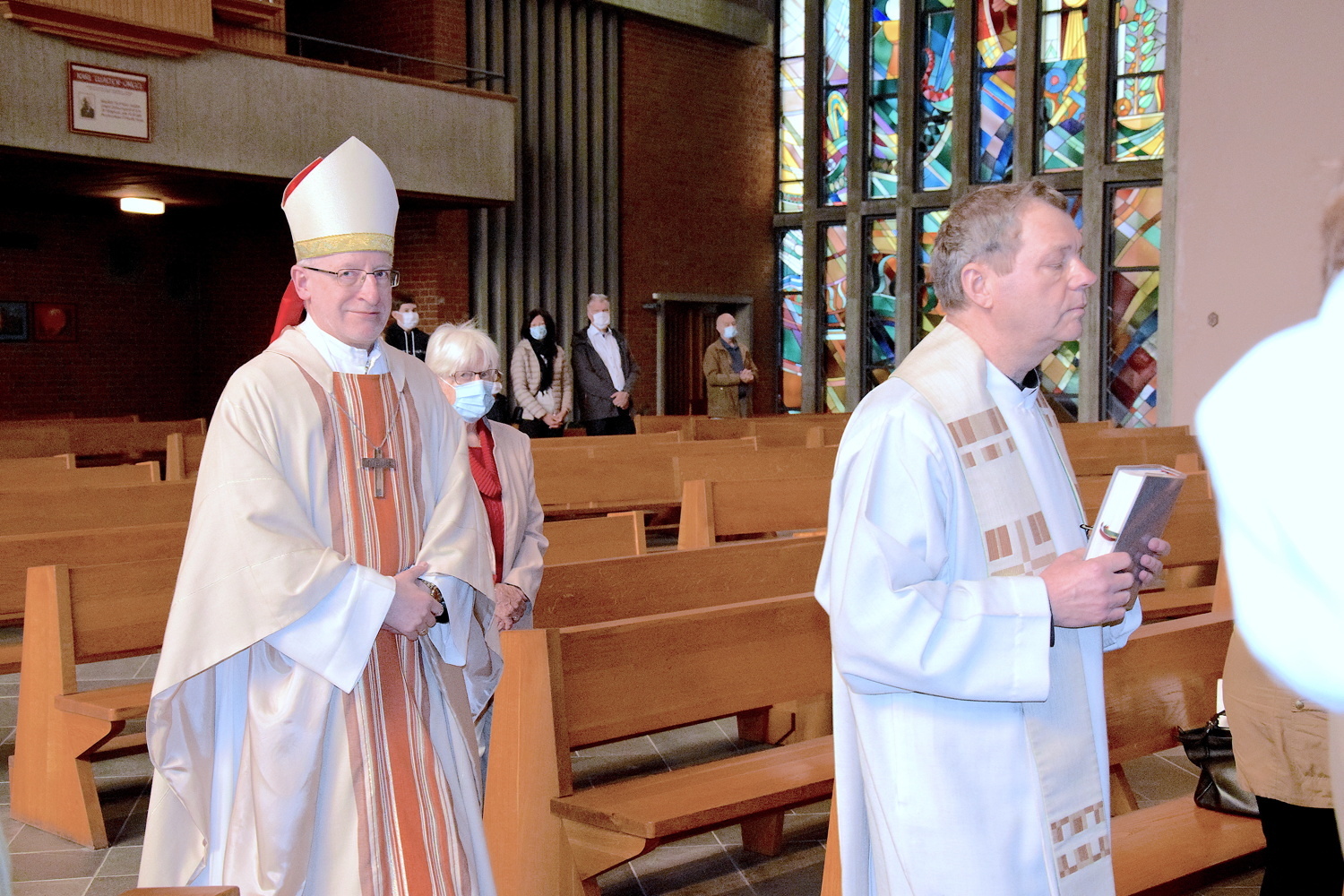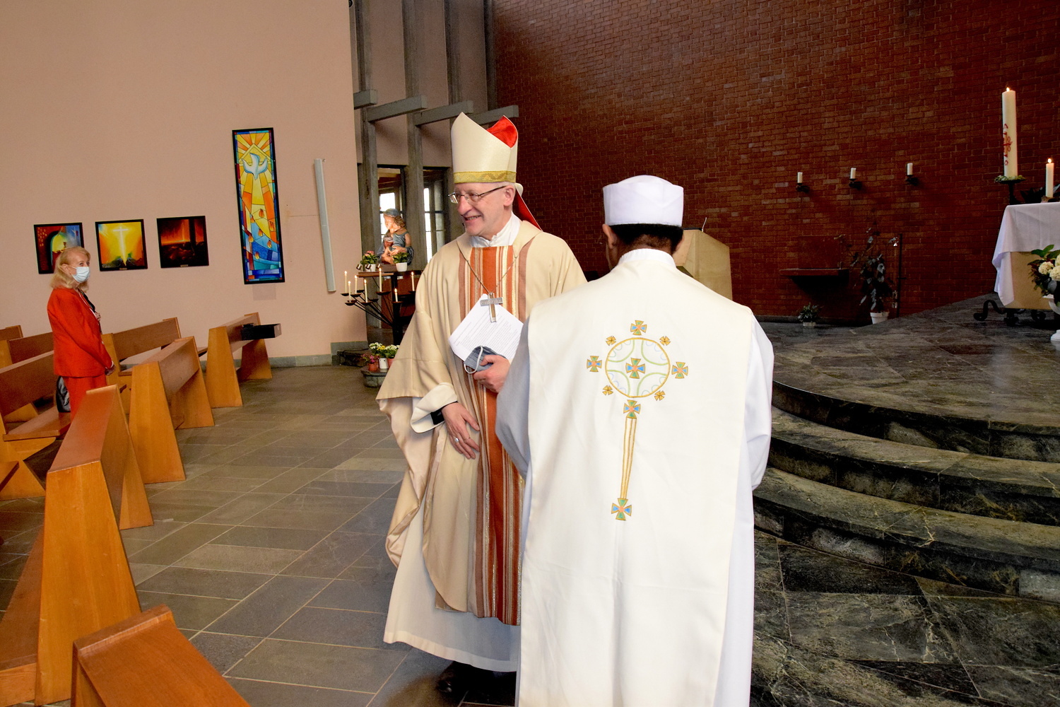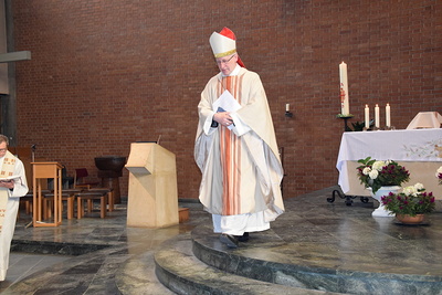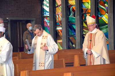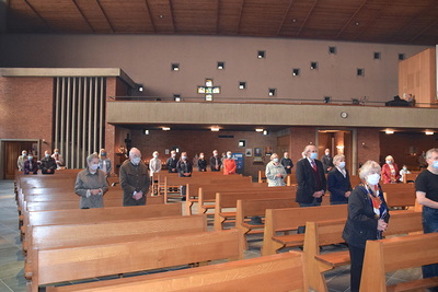 Rund zwei Monate lang gab es keine öffentlichen Gottesdienste. Gleich am ersten Sonntag danach feierte Weihbischof Franz Scharl – wie schon lange im Rahmen der Dekanatsvisitation geplant – die Sonntagsmesse mit uns. Es war ein ermutigender Auftakt in die "neue kirchliche Normalität" mit Maskenpflicht, reduzierter Teilnehmeranzahl und Mindestabstand.