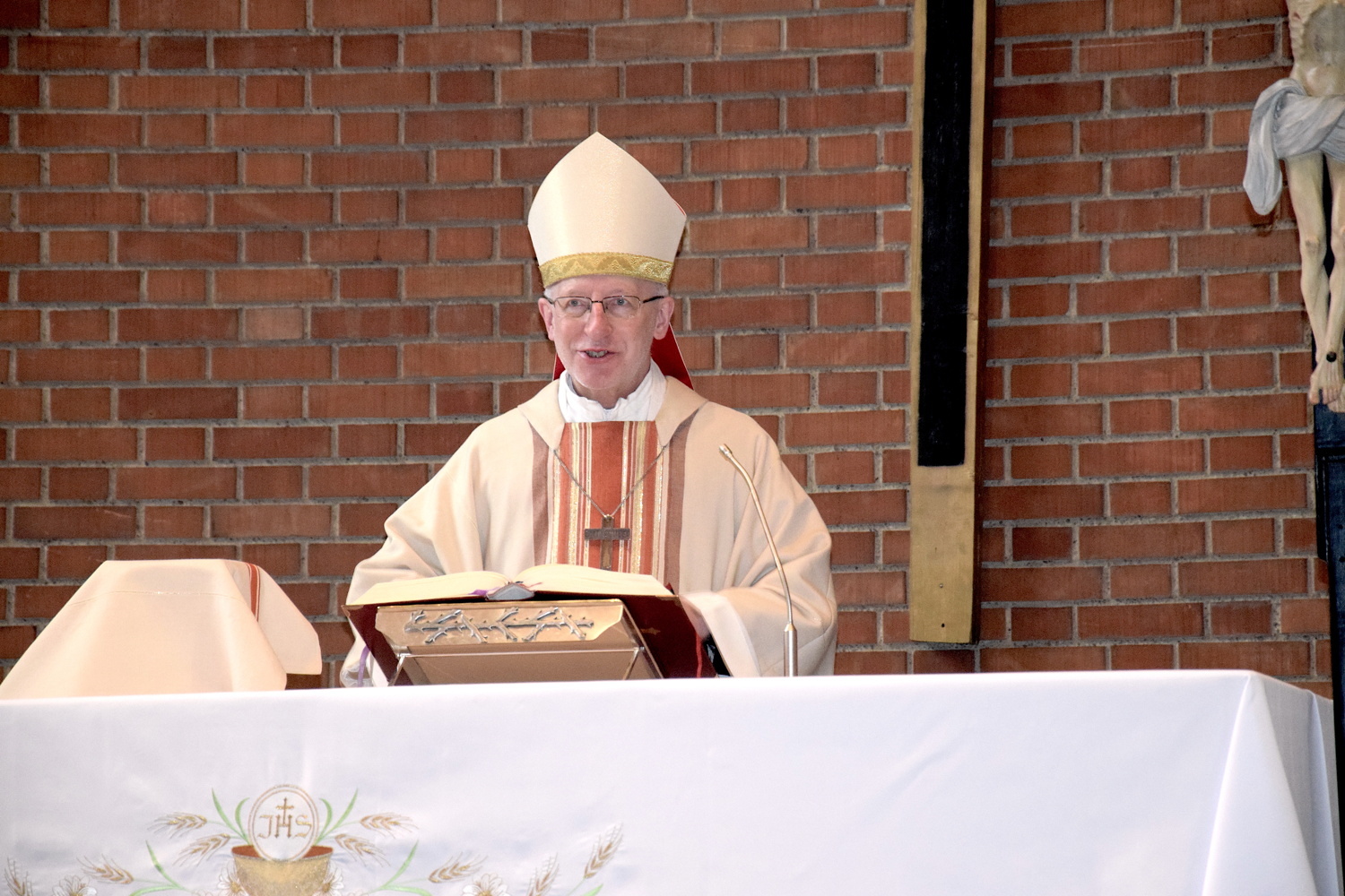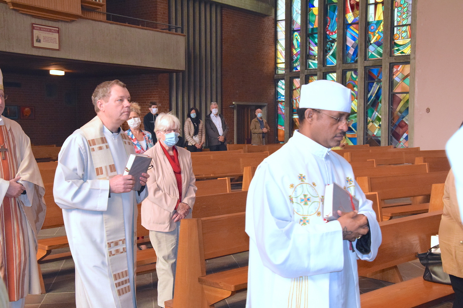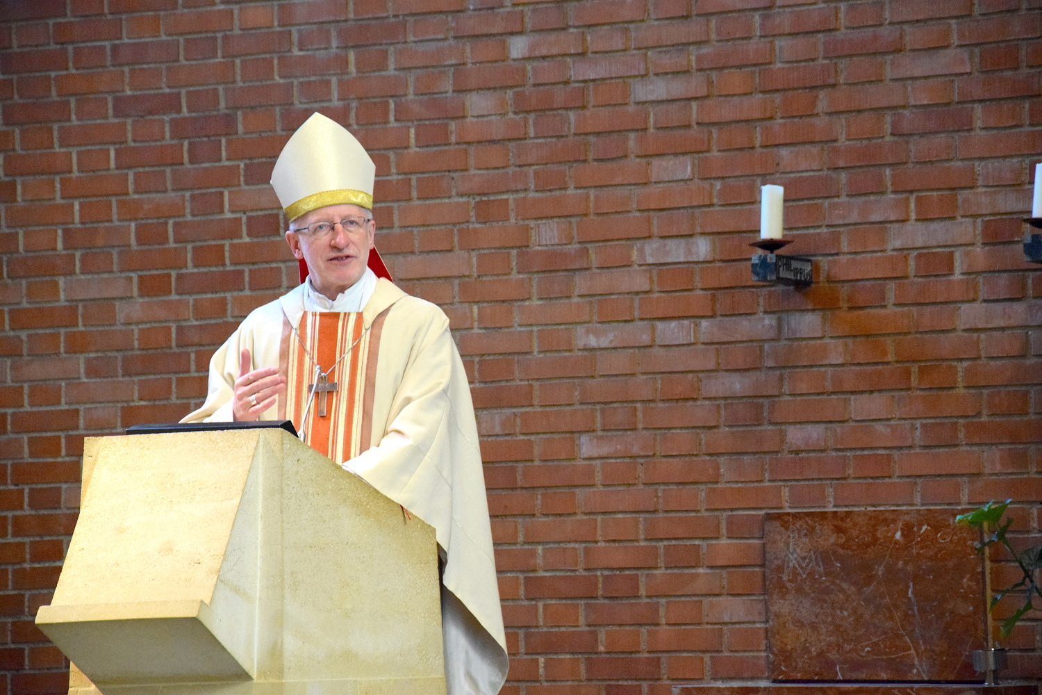 Rund zwei Monate lang gab es keine öffentlichen Gottesdienste. Gleich am ersten Sonntag danach feierte Weihbischof Franz Scharl – wie schon lange im Rahmen der Dekanatsvisitation geplant – die Sonntagsmesse mit uns. Es war ein ermutigender Auftakt in die "neue kirchliche Normalität" mit Maskenpflicht, reduzierter Teilnehmeranzahl und Mindestabstand.