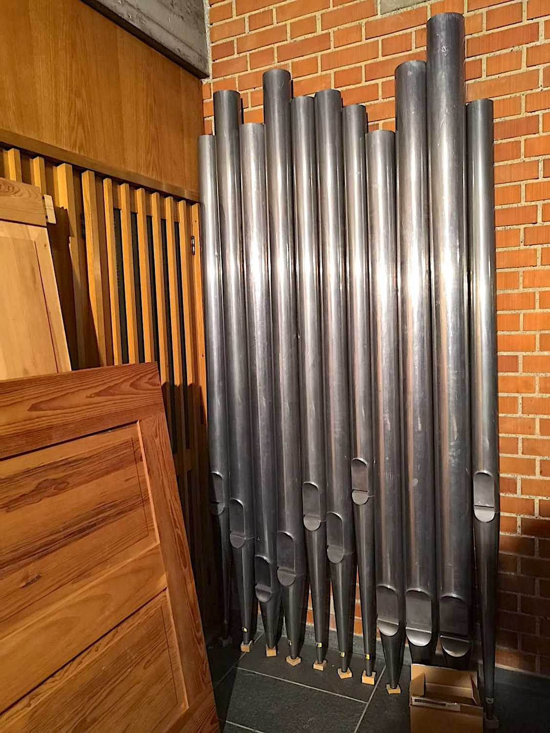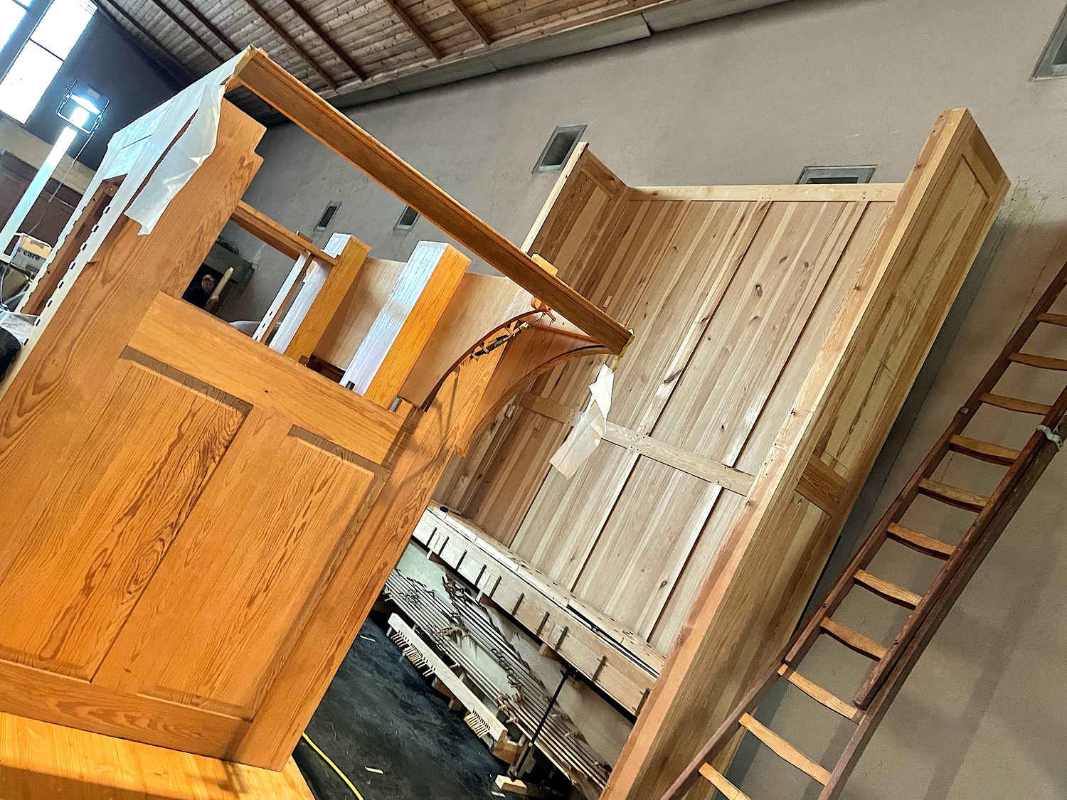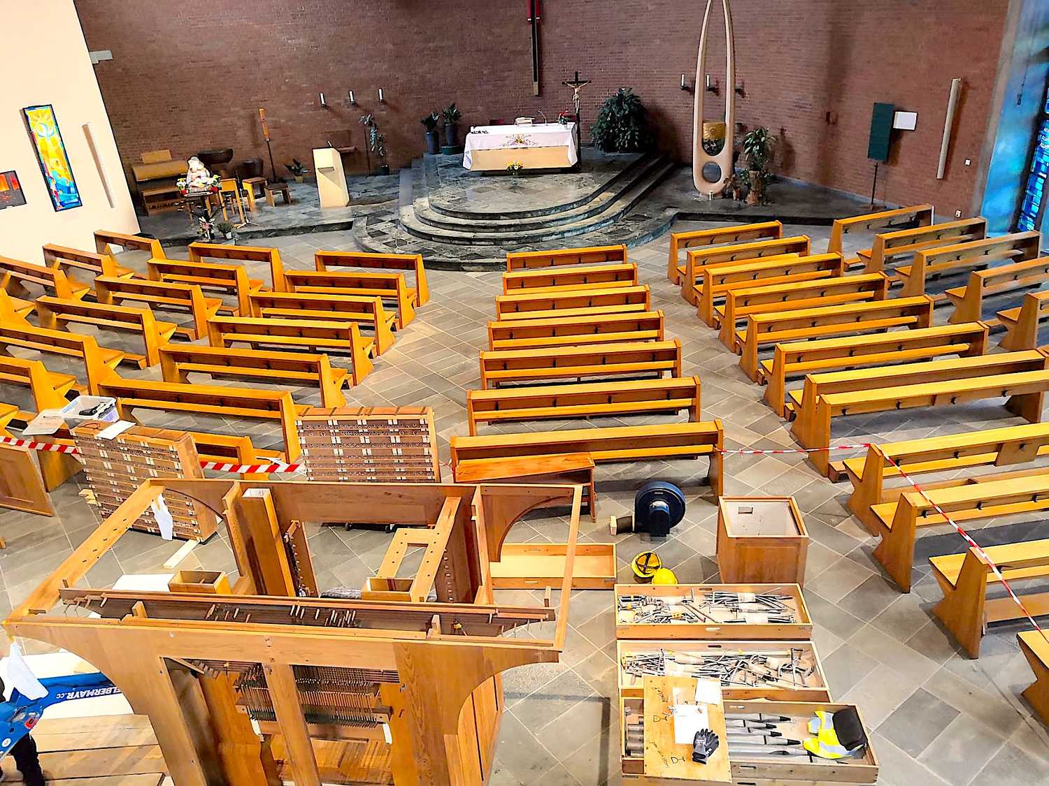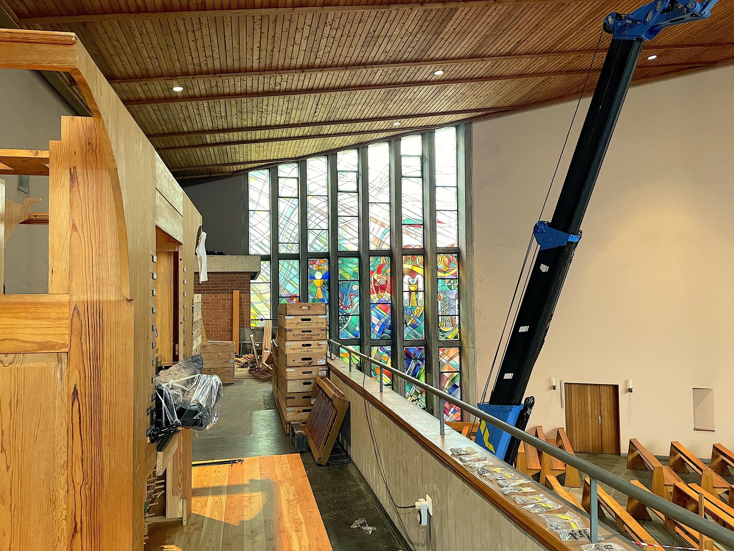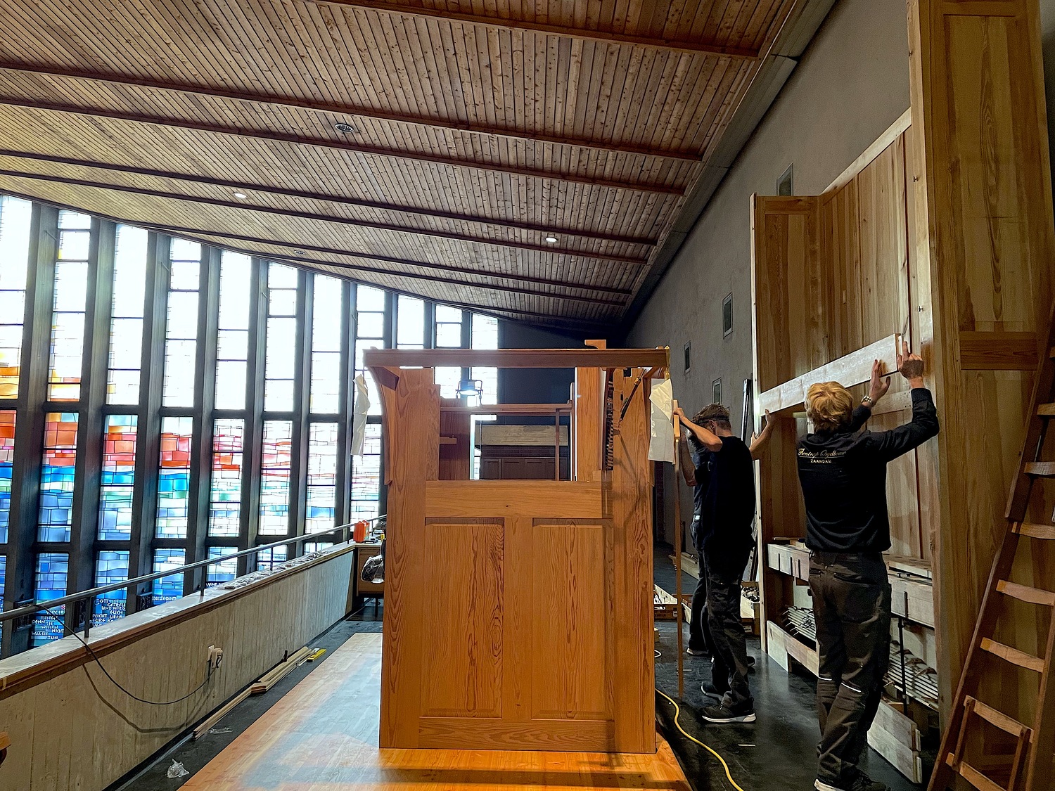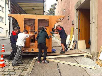 In unserer Kirche herrscht derzeit geschäftiges Treiben: Die neue Orgel, die Ende September 2021 in den Niederlanden auf die Reise geschickt wurde, wird Stück für Stück zusammengebaut – keine einfache Aufgabe bei rund 3.000 Orgelpfeifen!