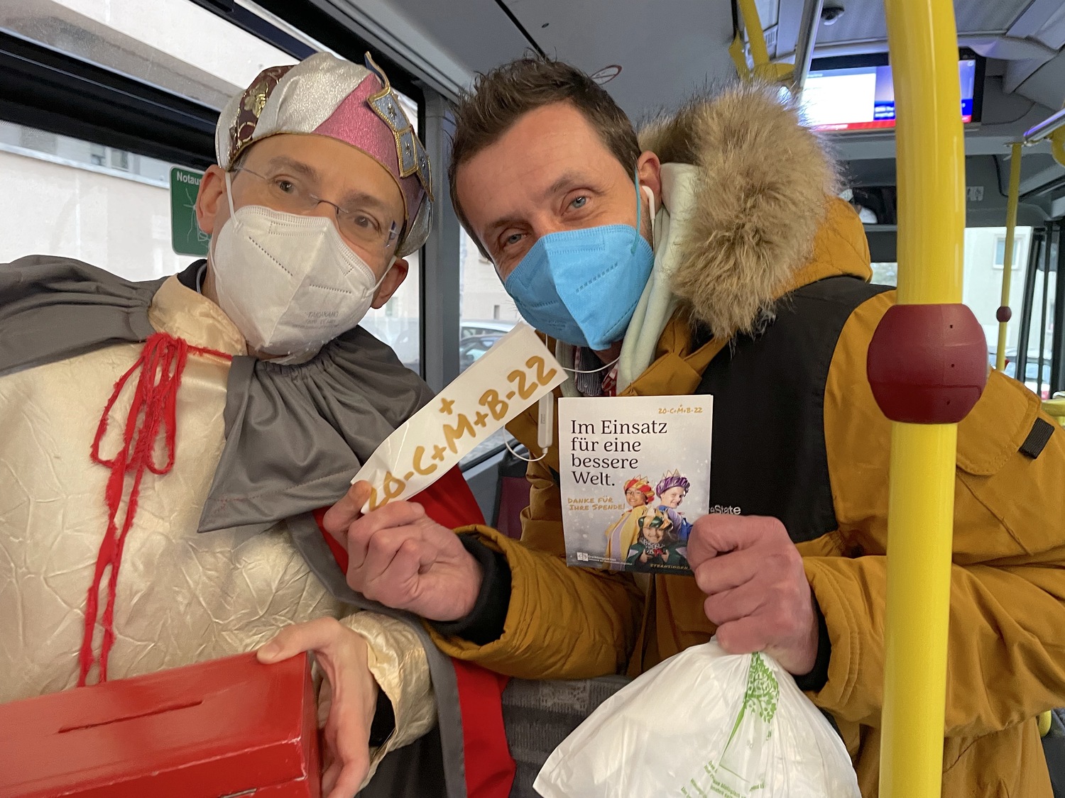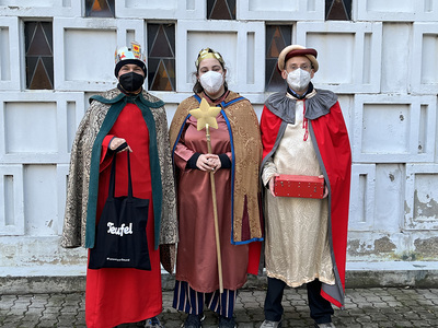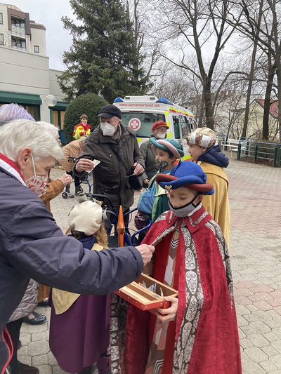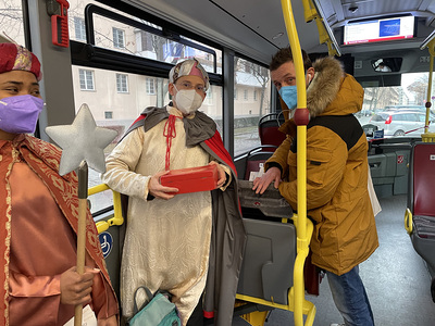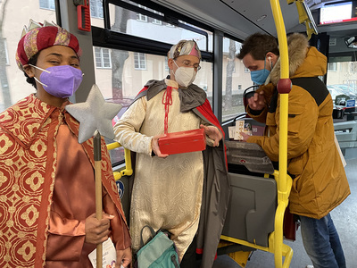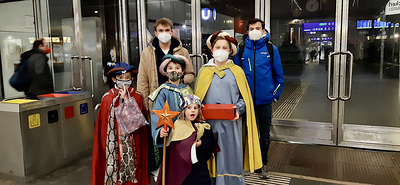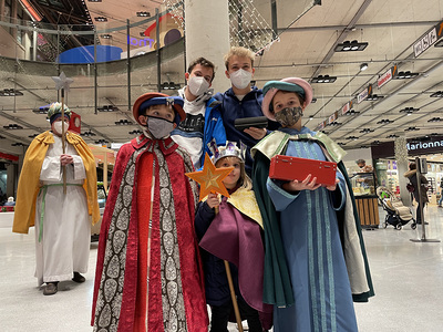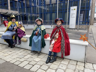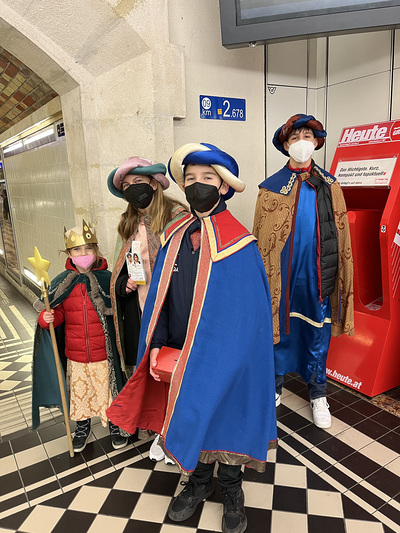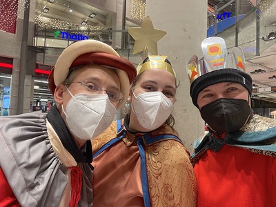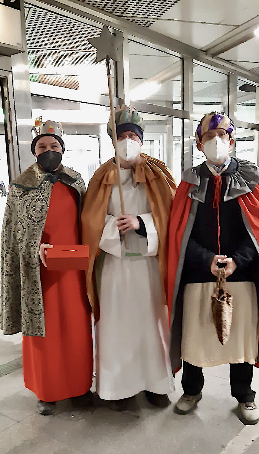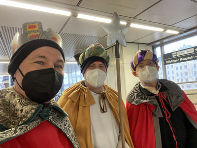 Coronabedingt besuchten unsere Könige auch diesmal keine Häuser, sondern waren wieder vor den U-Bahn-Stationen sowie im Q19 im Einsatz. Mit Gottes Segen im Gepäck huschten sie von einem "Hotspot" zum nächsten.