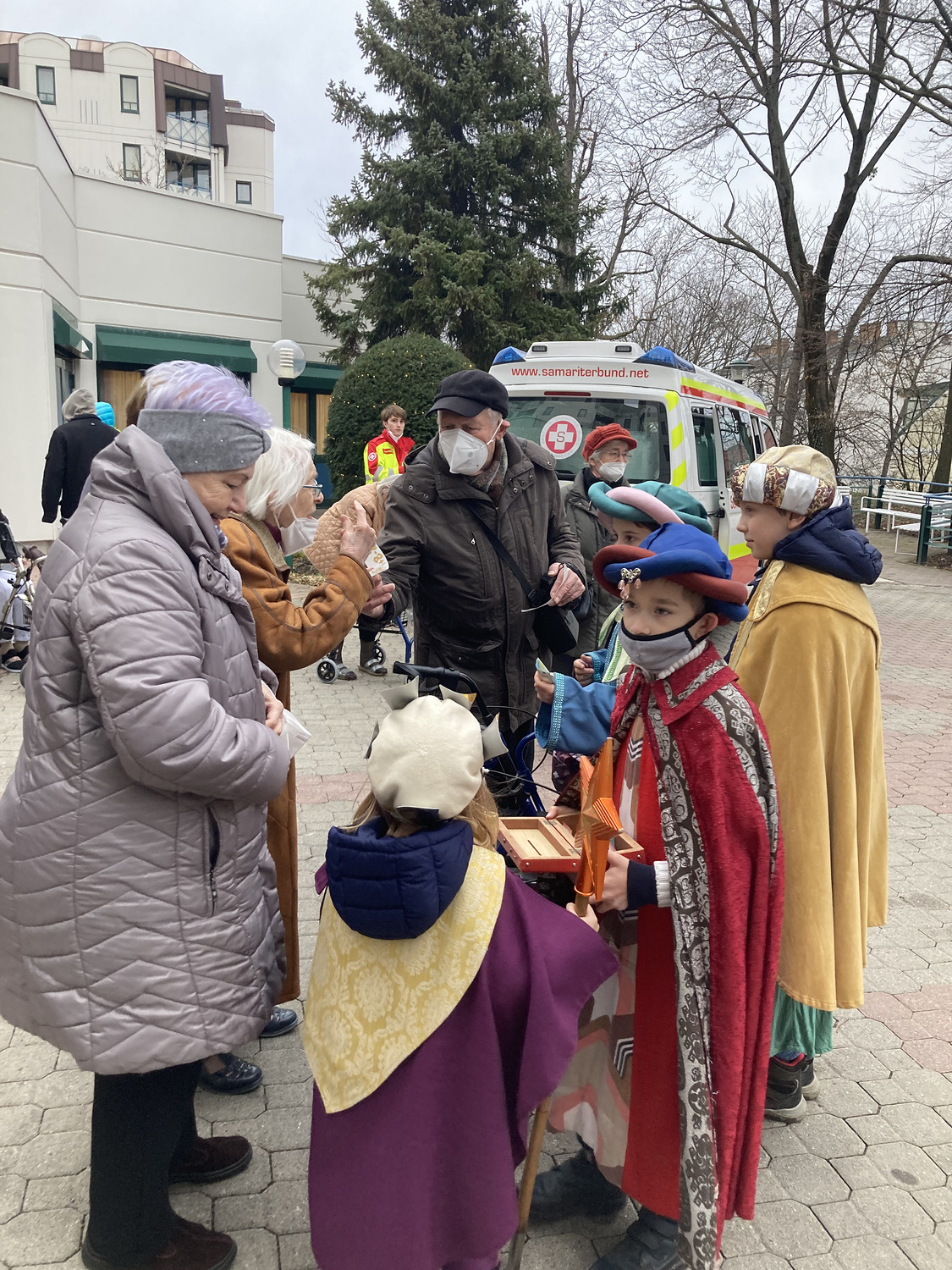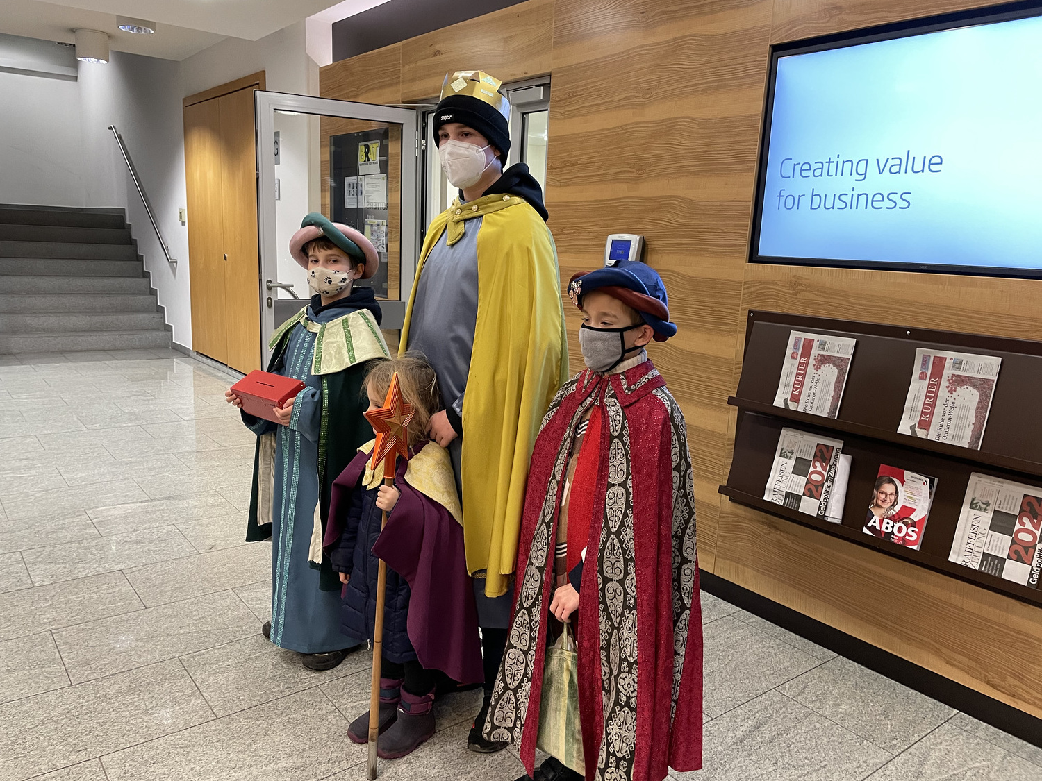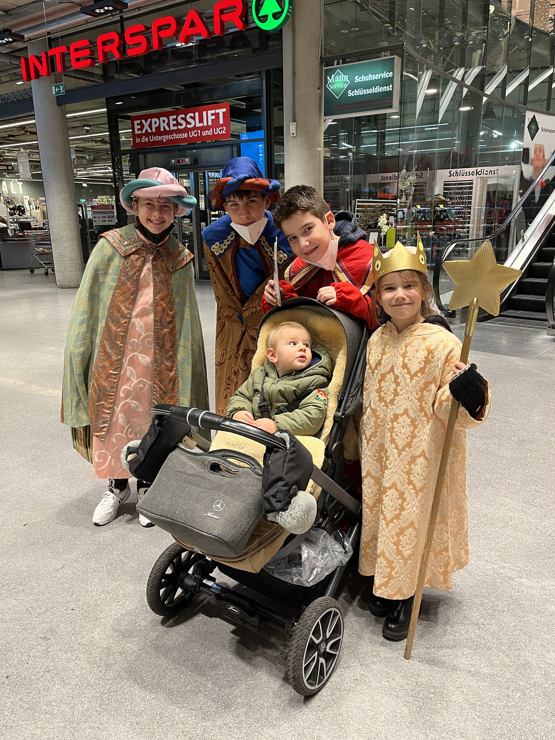 Coronabedingt besuchten unsere Könige auch diesmal keine Häuser, sondern waren wieder vor den U-Bahn-Stationen sowie im Q19 im Einsatz. Mit Gottes Segen im Gepäck huschten sie von einem "Hotspot" zum nächsten.