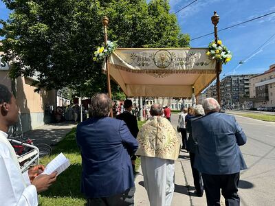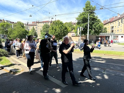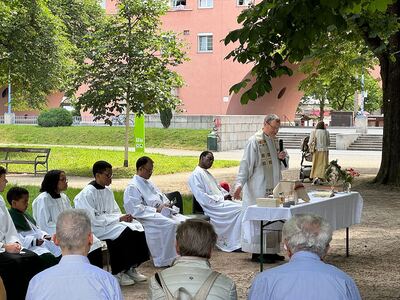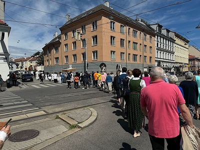 Am 30. Mai feierten wir wie jedes Jahr den Fronleichnamsgottesdienst am 12.-Februar-Platz. Gemeinsam mit Jesus, der uns in der eucharistischen Gestalt des Brotes begleitete, ging es dann in die Nußdorfer Pfarrkirche, wo der Vormittag festlich ausklang.