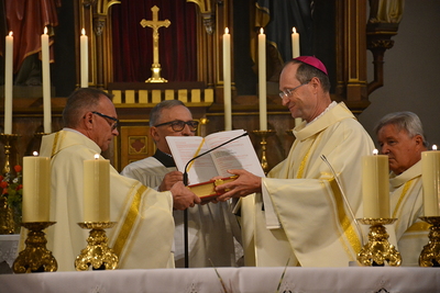 Fotos von der Amtseinführung von Mag. Hannes Saurugg zum Pfarrprovisor des Pfarrverbandes Korneuburg Nord durch Weihbischof Stephan Turnovszky in Harmannsdorf.