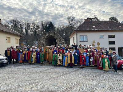 Am 6.1.2026 waren in unserer Pfarrgemeinde 20 Gruppen mit 78 Sternsingern und ihren Begleitern unterwegs, um den Segen in die Häuser zu bringen und Geld zu sammeln für die Projekte der Dreikönigs-Aktion.