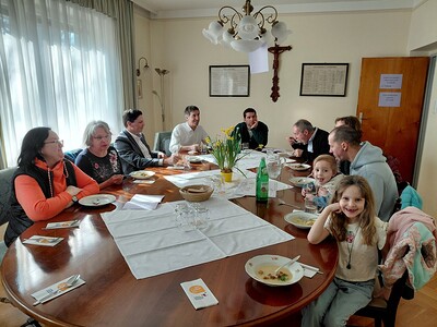 Daher luden die Frauen der kath. Frauenbewegung zum anschließenden Suppenessen in den Pfarrhof. Nichts blieb übrig, alles hat sehr gut gemundet. Mit der Gestaltung des Gottesdienstes, der Suppenausspendung – all das sind Szenen, in denen etwas vom Glanz Gottes durchscheinen kann. Und schön, wenn wir dadurch mit unseren Freunden und Glaubensgeschwistern gemeinsam helfen können, um Gottes Gegenwart in unserem Alltag sichtbar zu machen.