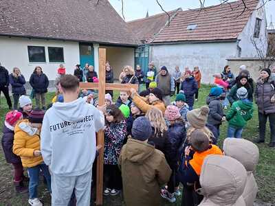 Auch heuer wieder fand der alljährliche Kinderkreuzweg über die Weinberge statt, der sehr gut von vielen Kindern und ihren Eltern und Begleitpersonen aus den Pfarren Obergänserndorf, Harmannsdorf, Würnitz und Stetten besucht wurde. Unterwegs, als es dunkel wurde, entzündeten wir Fackeln. Geendet hat der Kreuzweg in der Kirche mit dem Segen durch den Herrn Pfarrer.