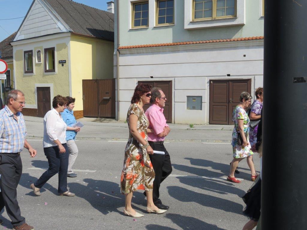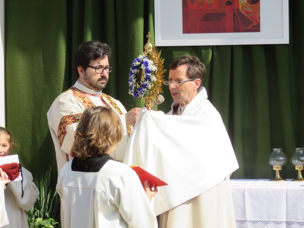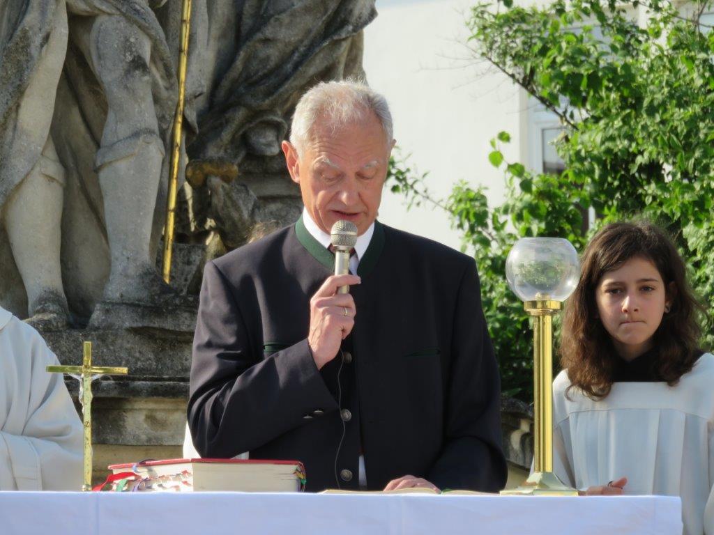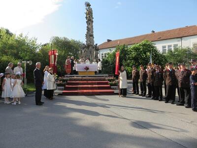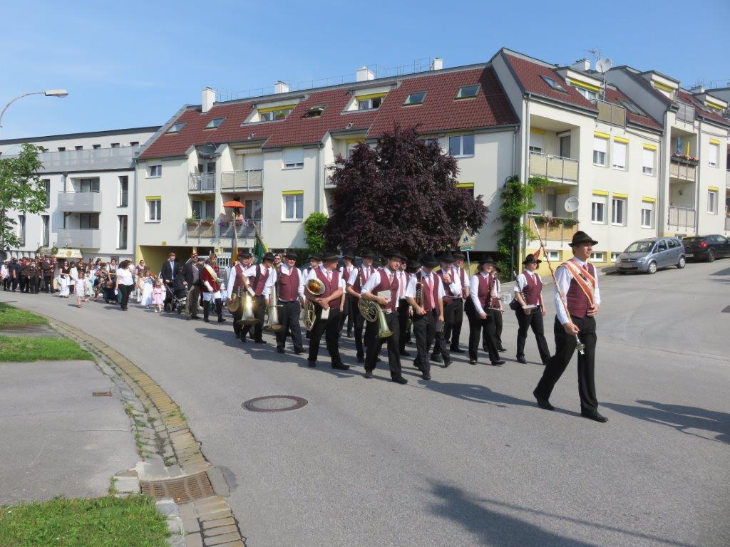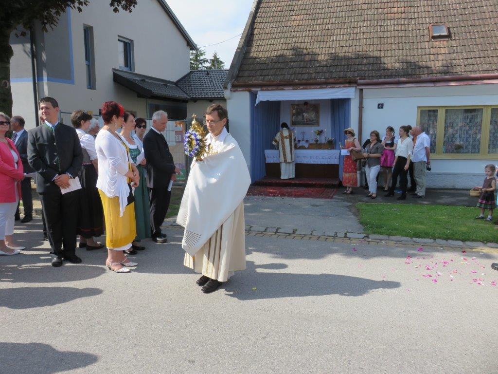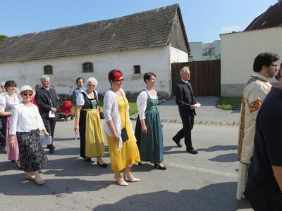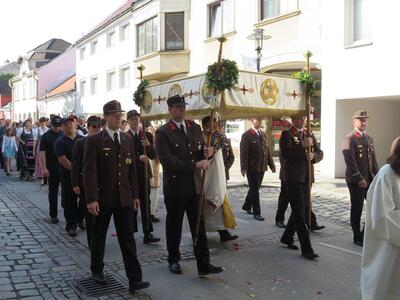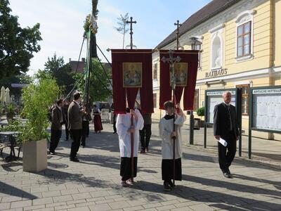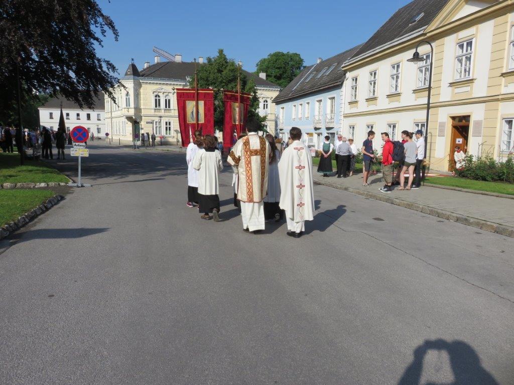 Am Sonntag, 29. Mai begangen wir das Fronleichnamsfest. Was wir an Fronleichnam feiern, ist die Freude darüber, dass Jesus wirklich unter uns gegenwärtig ist. Dazu schmückten wir die Fenster der Häuser am Wege der Prozession, daher zogen wir mit Musik, Gesang, mit Fahnen und festlicher Kleidung durch unsere Straßen. Deshalb nennen wir dieses Brot das „Allerheiligste“. Der Priester trug es in einer prächtigen Monstranz, unter dem „Himmel“, segnet damit unsere Gemeinde und alle Menschen, besonders die Kranken, Bedrängten und Notleidenden.