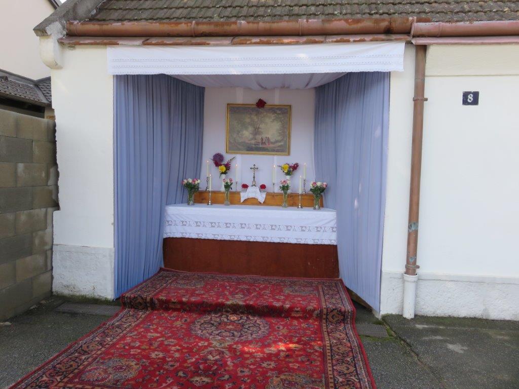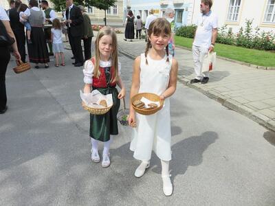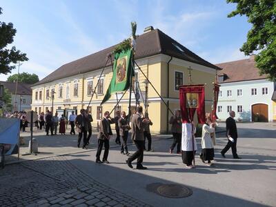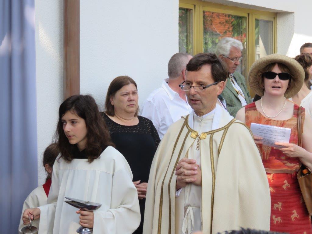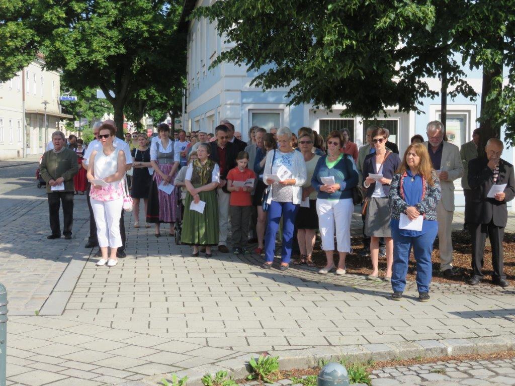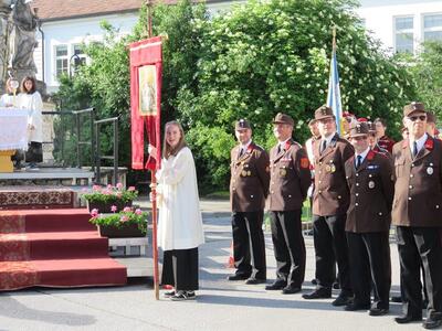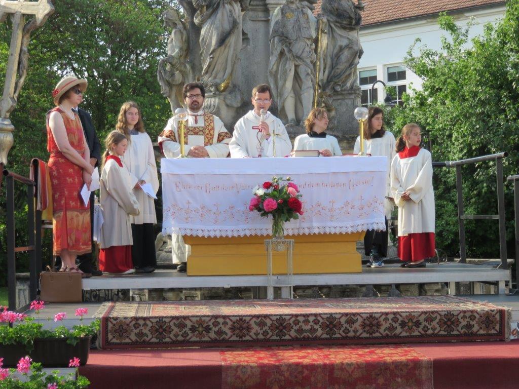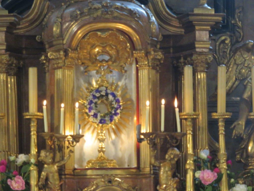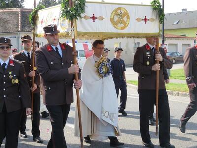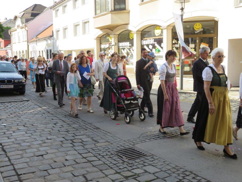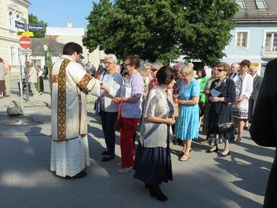 Am Sonntag, 29. Mai begangen wir das Fronleichnamsfest. Was wir an Fronleichnam feiern, ist die Freude darüber, dass Jesus wirklich unter uns gegenwärtig ist. Dazu schmückten wir die Fenster der Häuser am Wege der Prozession, daher zogen wir mit Musik, Gesang, mit Fahnen und festlicher Kleidung durch unsere Straßen. Deshalb nennen wir dieses Brot das „Allerheiligste“. Der Priester trug es in einer prächtigen Monstranz, unter dem „Himmel“, segnet damit unsere Gemeinde und alle Menschen, besonders die Kranken, Bedrängten und Notleidenden.