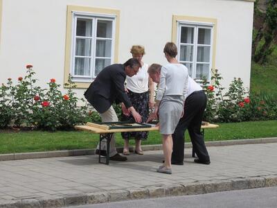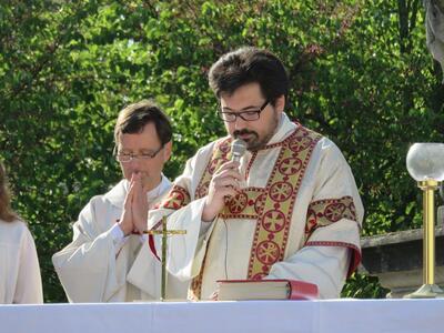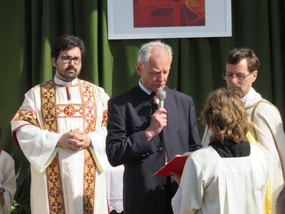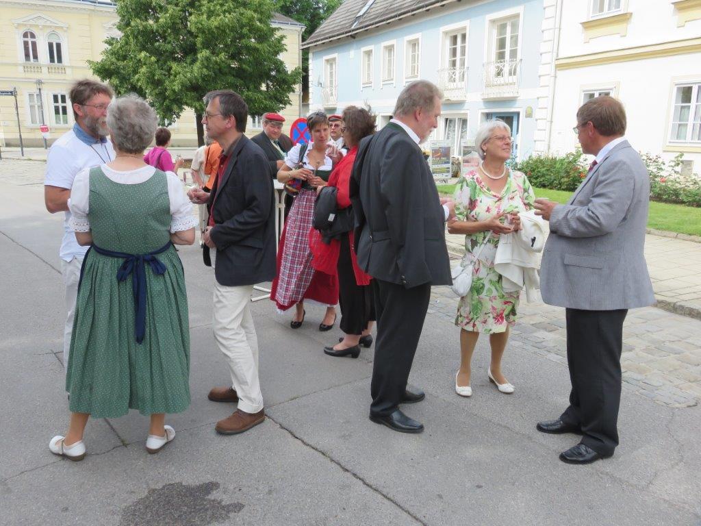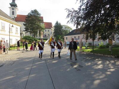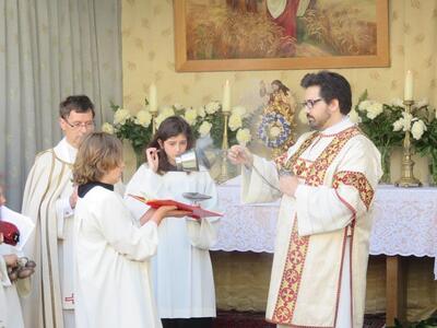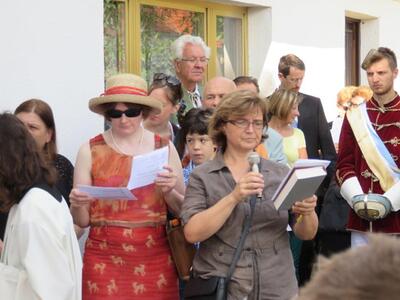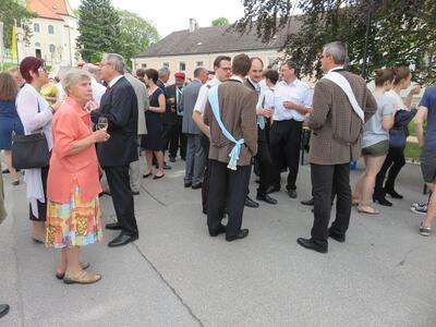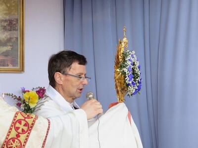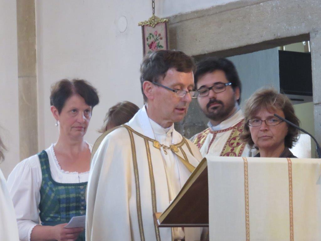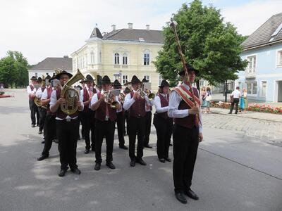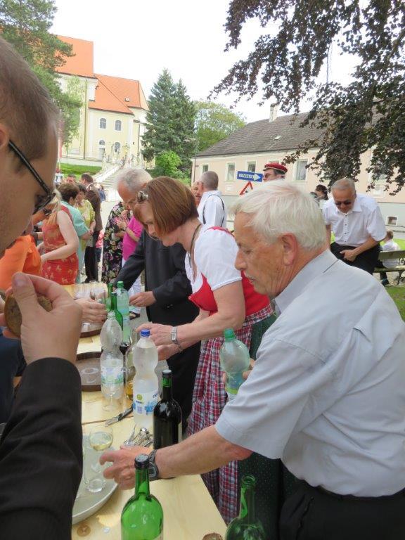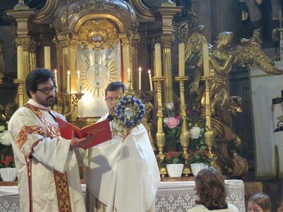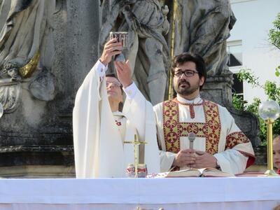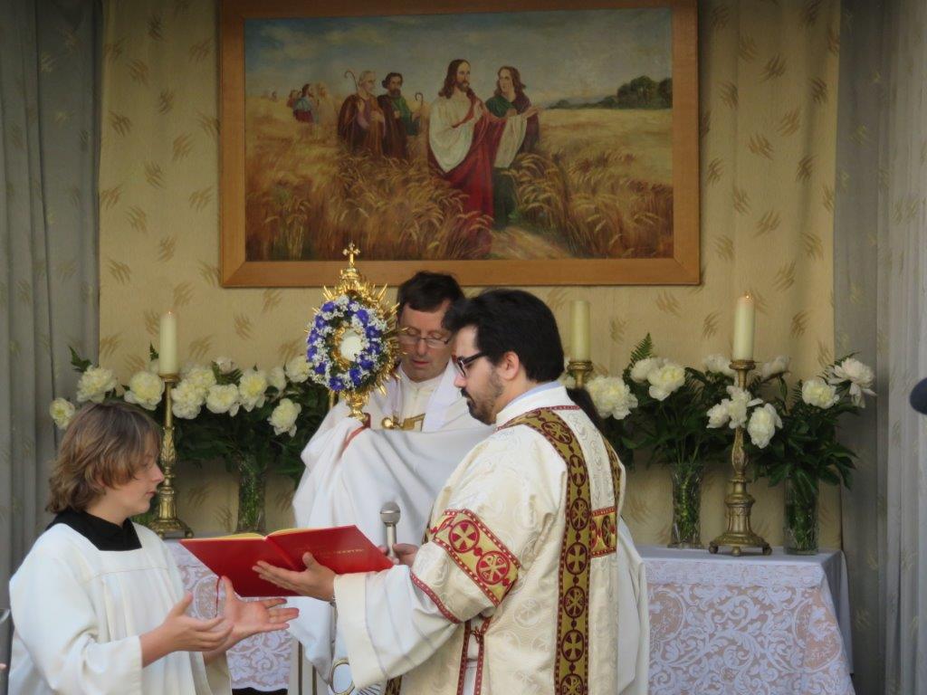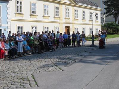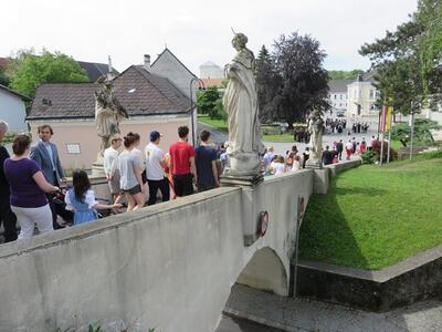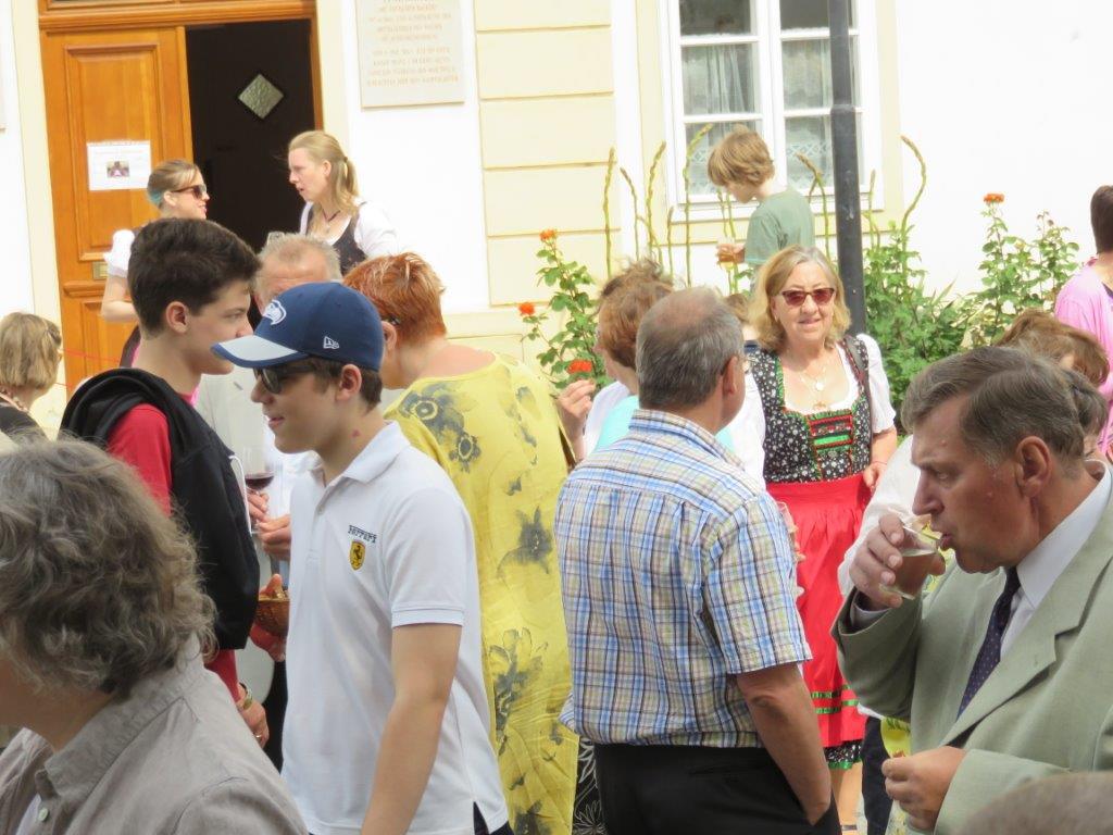Am Sonntag, 29. Mai begangen wir das Fronleichnamsfest. Was wir an Fronleichnam feiern, ist die Freude darüber, dass Jesus wirklich unter uns gegenwärtig ist. Dazu schmückten wir die Fenster der Häuser am Wege der Prozession, daher zogen wir mit Musik, Gesang, mit Fahnen und festlicher Kleidung durch unsere Straßen. Deshalb nennen wir dieses Brot das „Allerheiligste“. Der Priester trug es in einer prächtigen Monstranz, unter dem „Himmel“, segnet damit unsere Gemeinde und alle Menschen, besonders die Kranken, Bedrängten und Notleidenden.