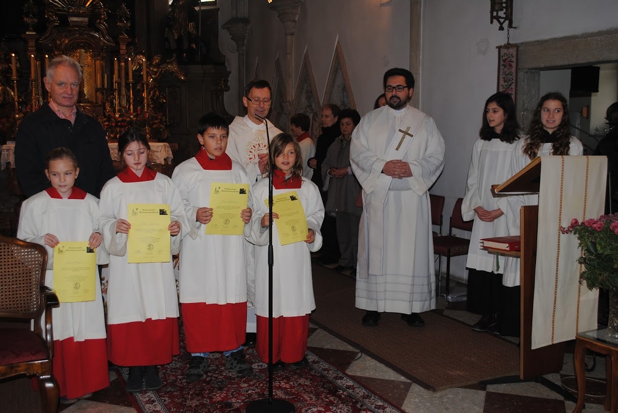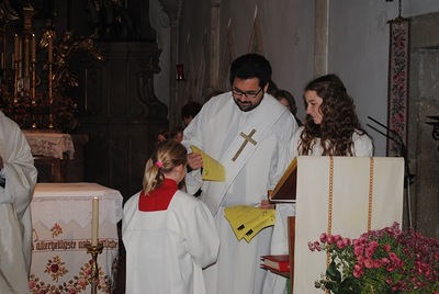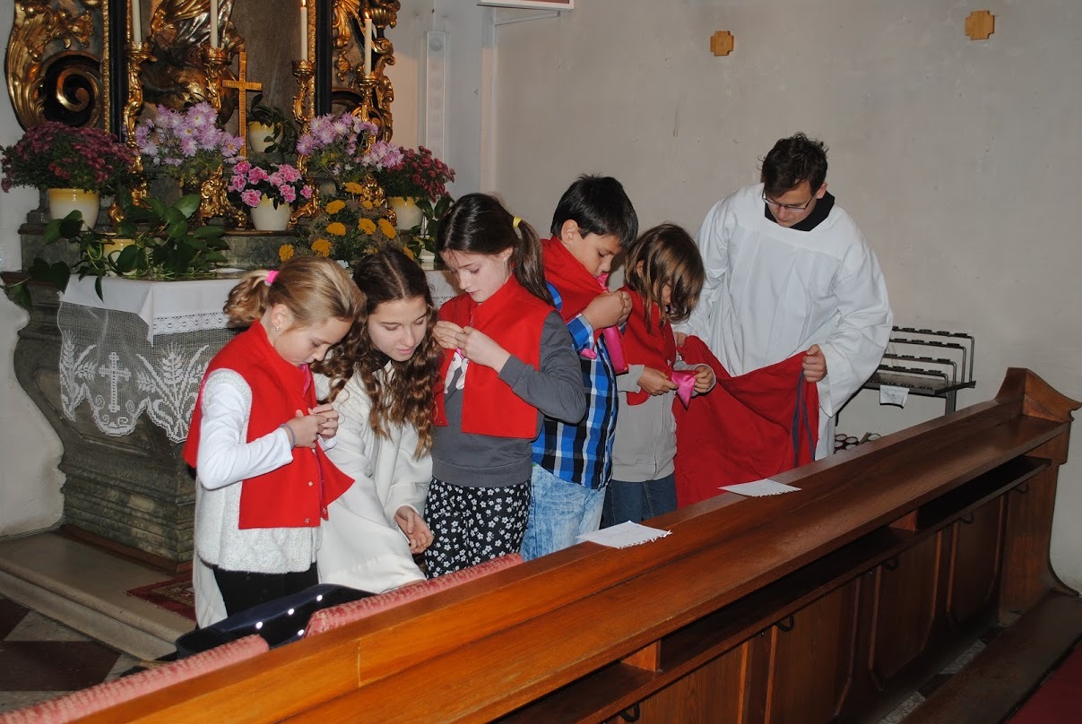Beim Pfarrgottesdienst am Christkönigssonntag, 20. November wurden drei Mädchen und ein Bub in die Schar der Ministranten aufgenommen. Die neuen Minis - Paula Heurteur, Danae Himmel, Sophie Huber und Simon Kalbacher wurden von Gloria Kerbl und Lena Fuchs auf ihr neues Amt vorbereitet und der Gemeinde vorgestellt.